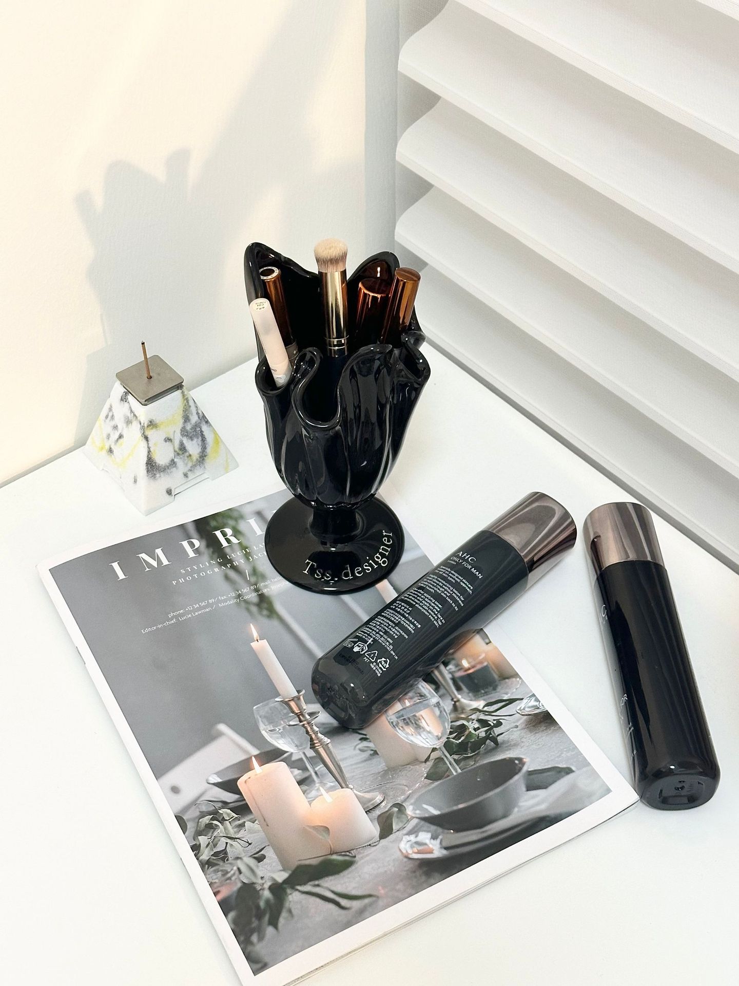 메이크업 브러쉬를 더욱 아름답고 편리하게. 세라믹 메이크업 브러시 스탠드로 드레서를 한 단계 올리세요.