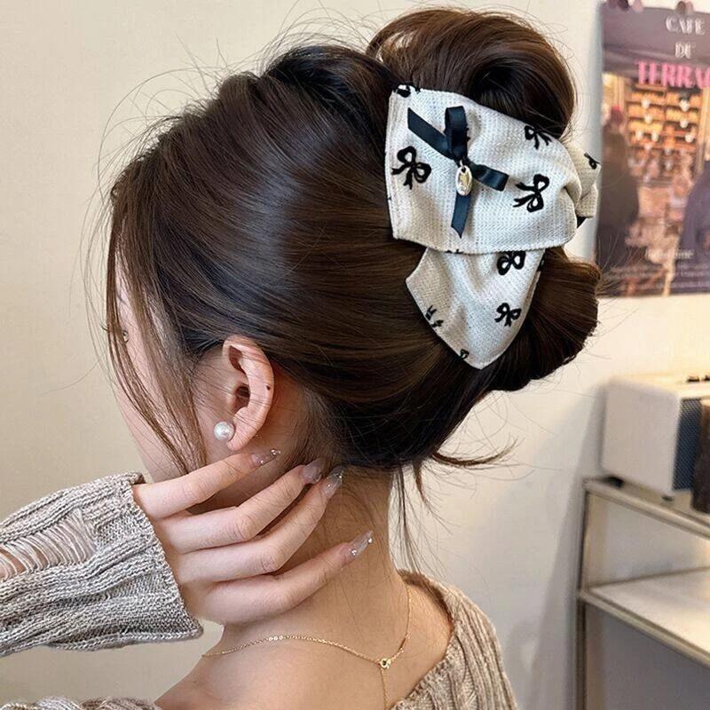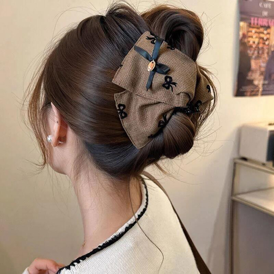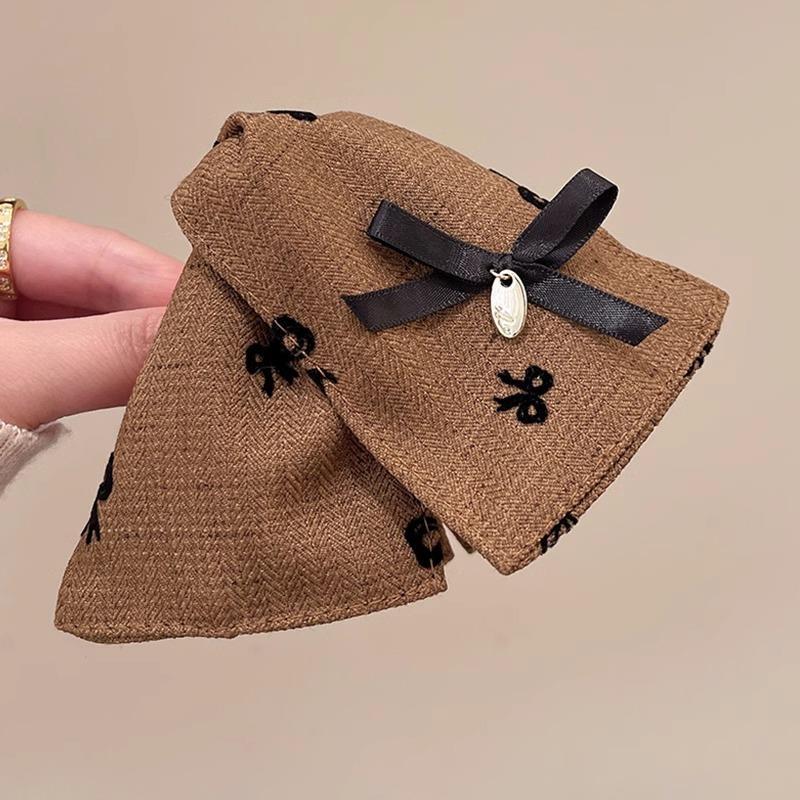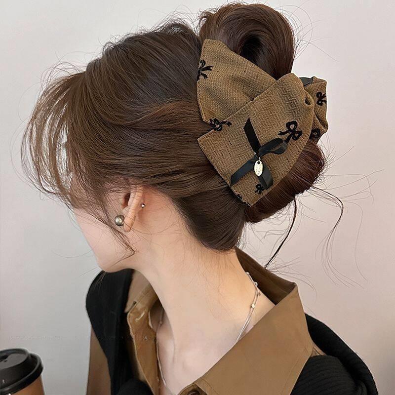 リボン付き 布製 バンスクリップ ブラウン 上品 ヘアクリップ 韓国風 🤎🎀