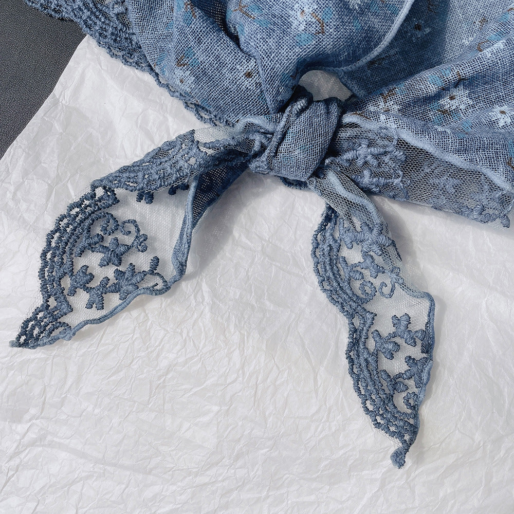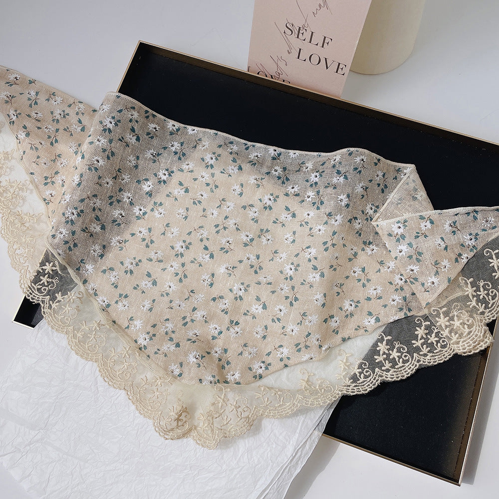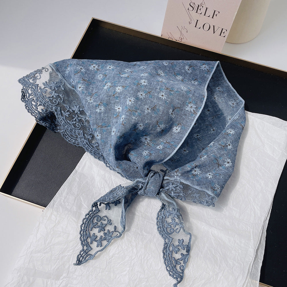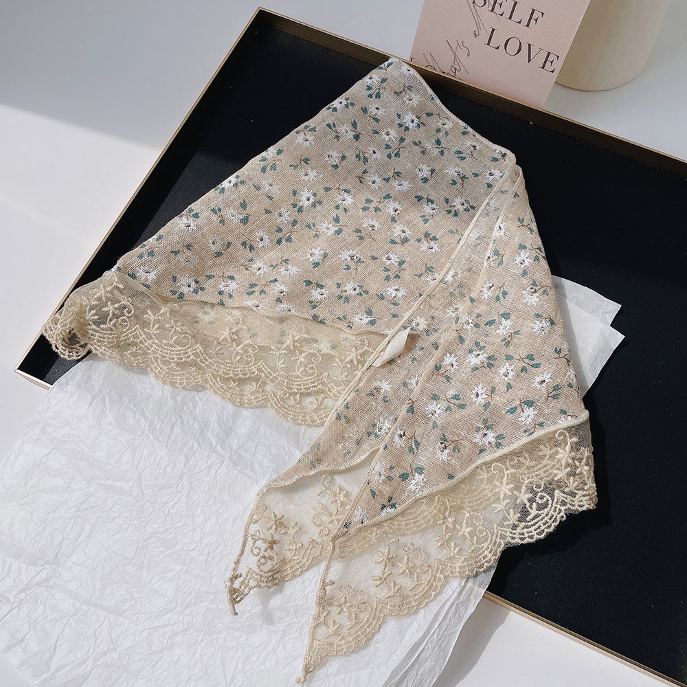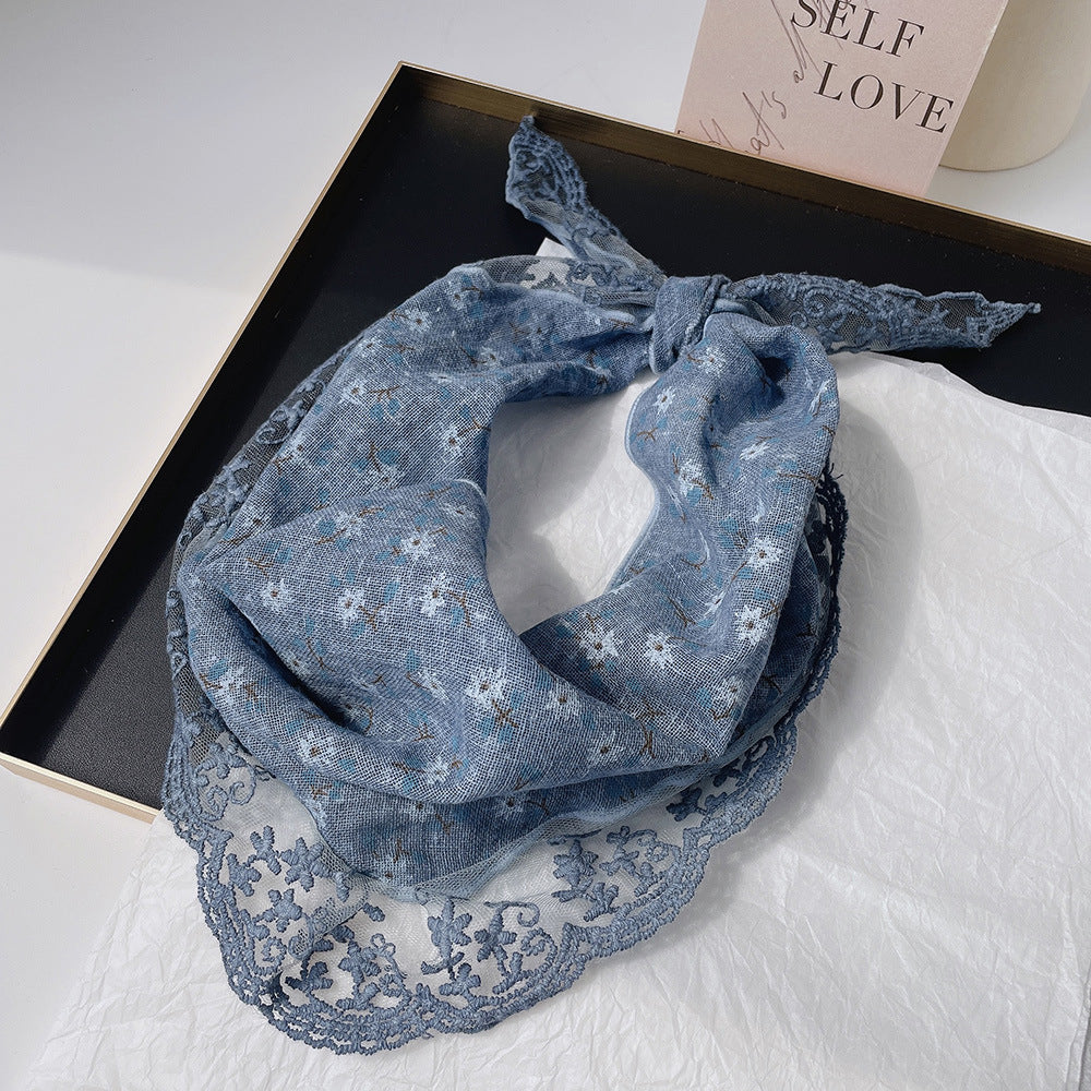 レースエッジラミートライアングルスカーフ 夏の旅スタイルに