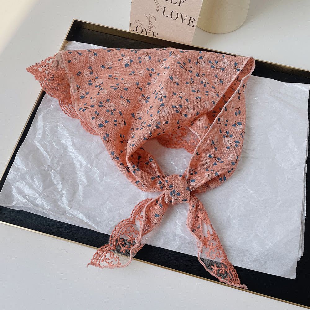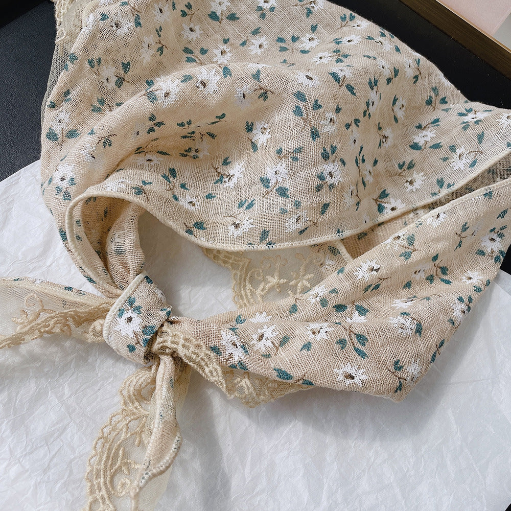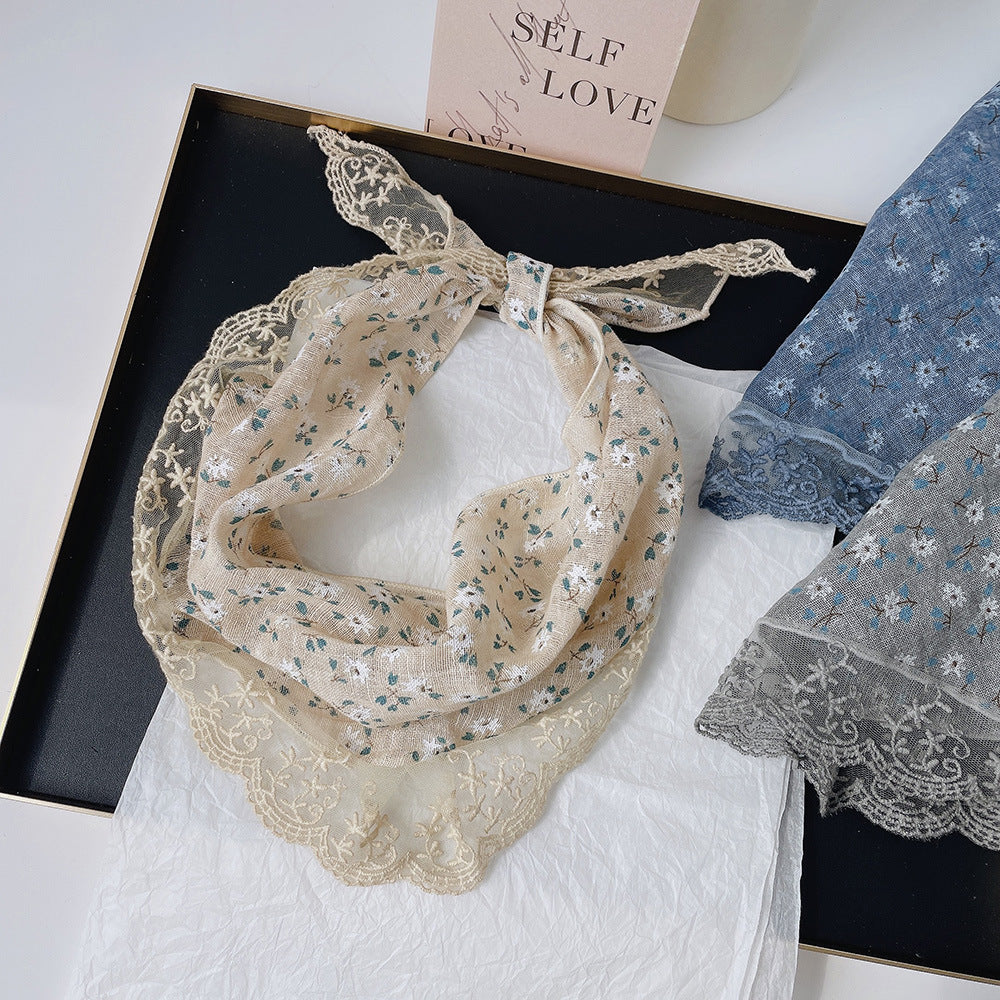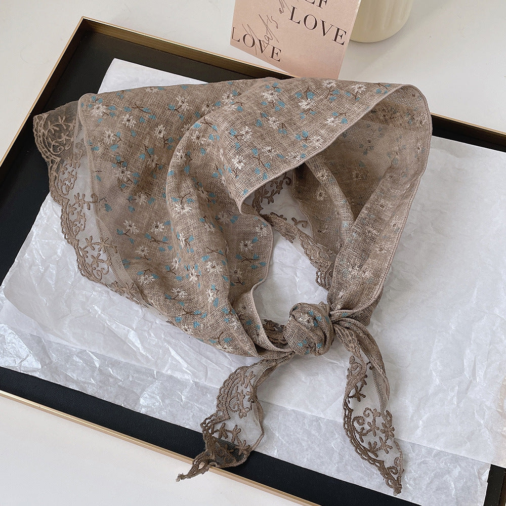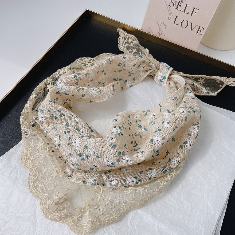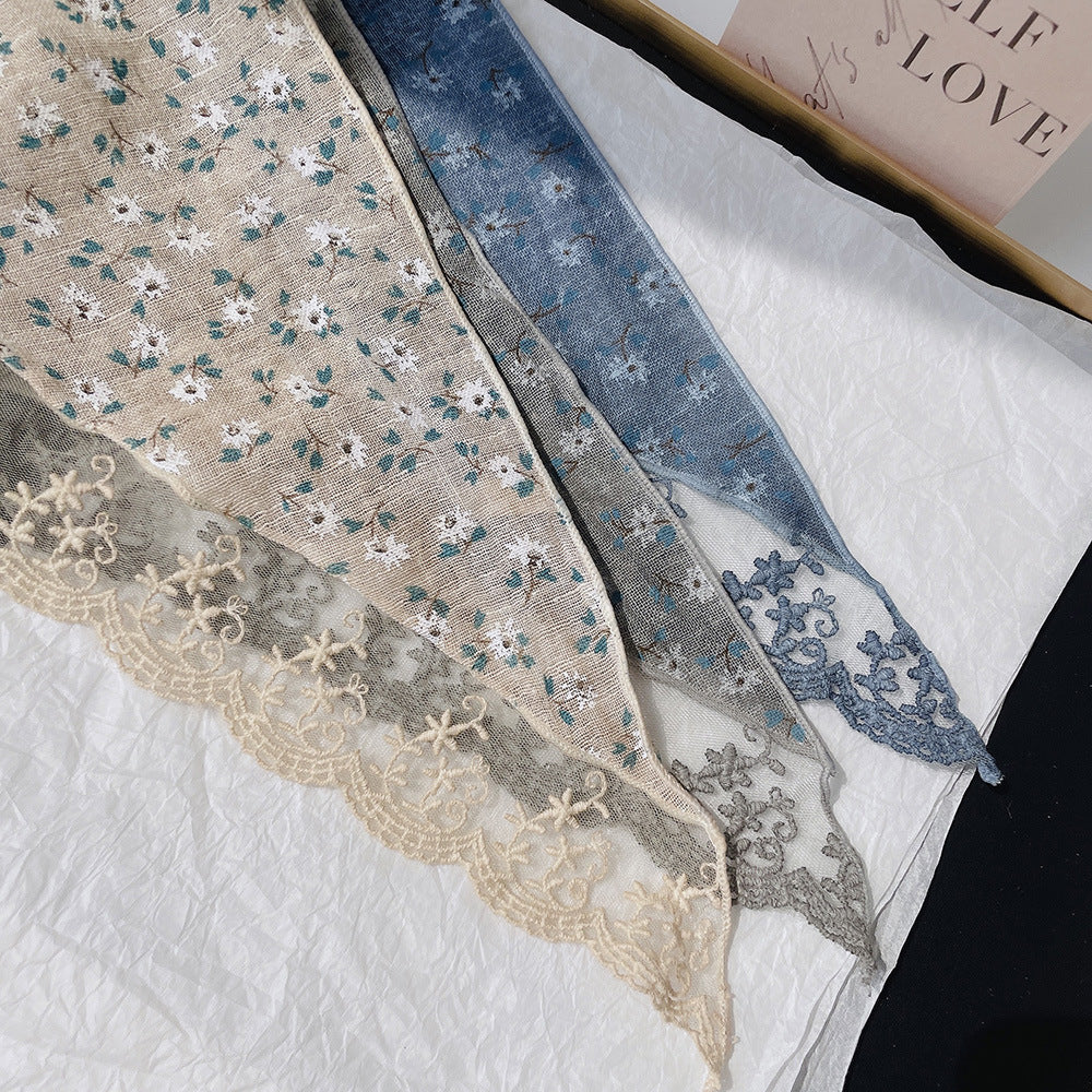 レースエッジラミートライアングルスカーフ 夏の旅スタイルに
