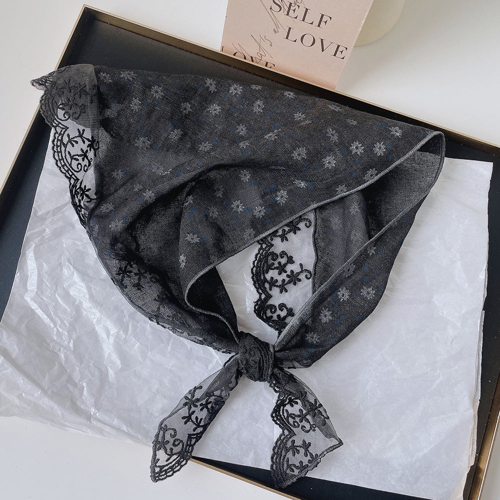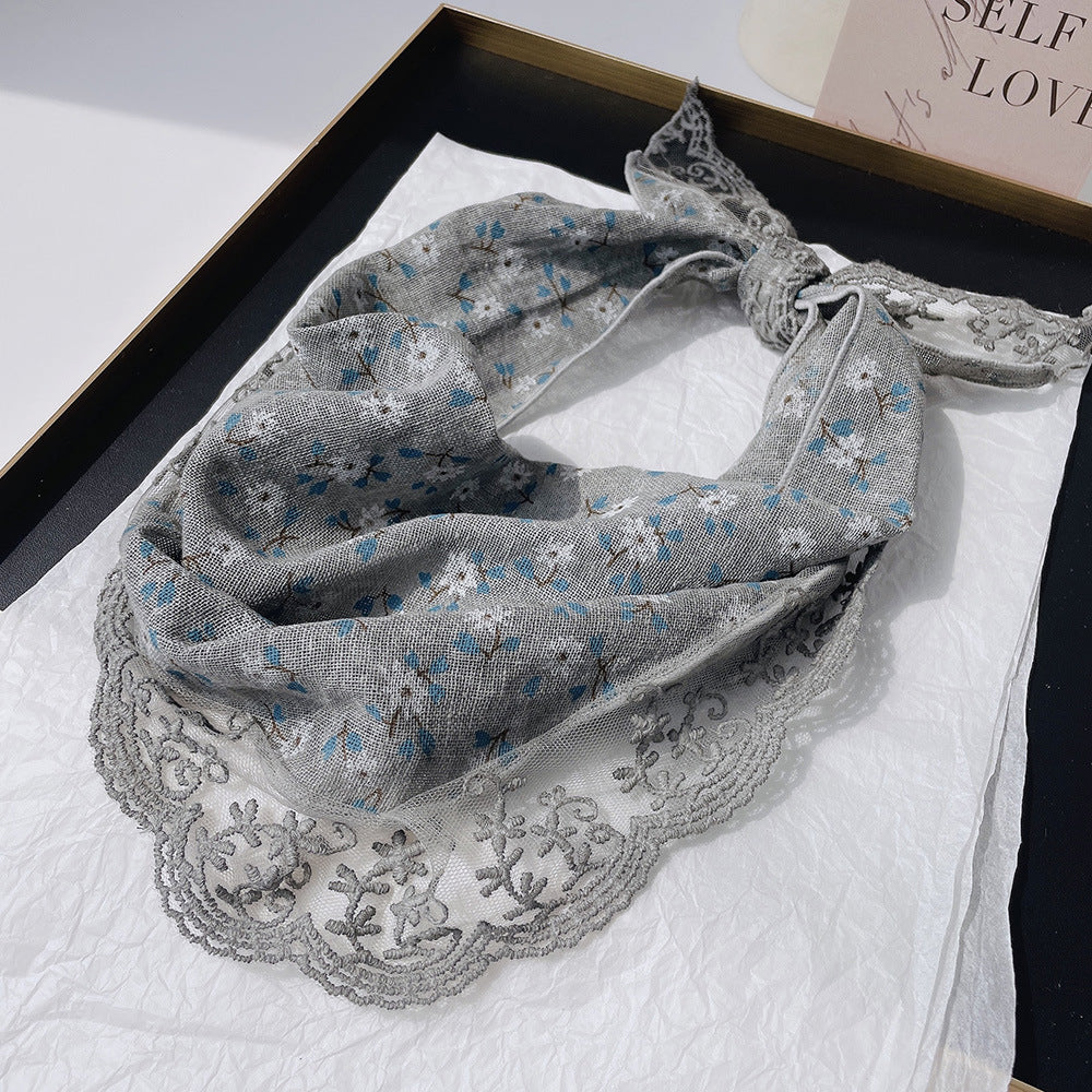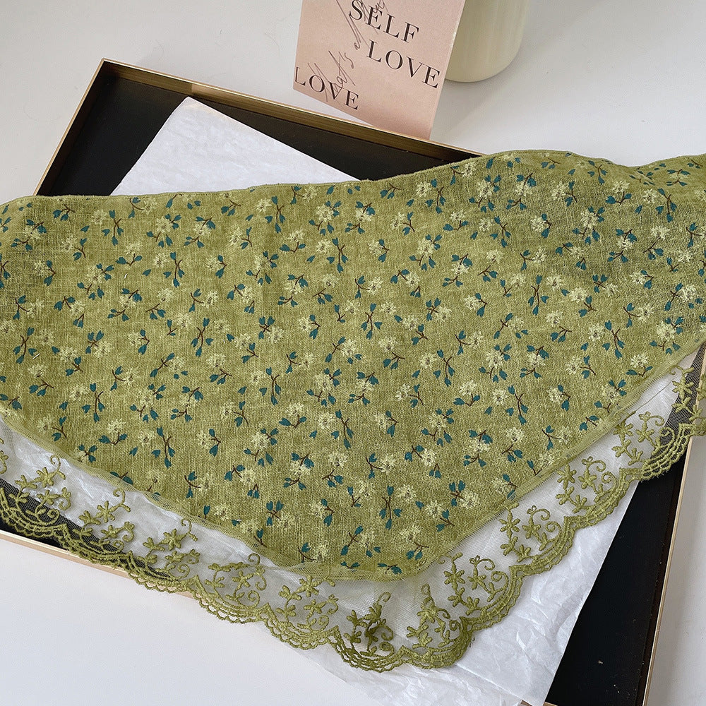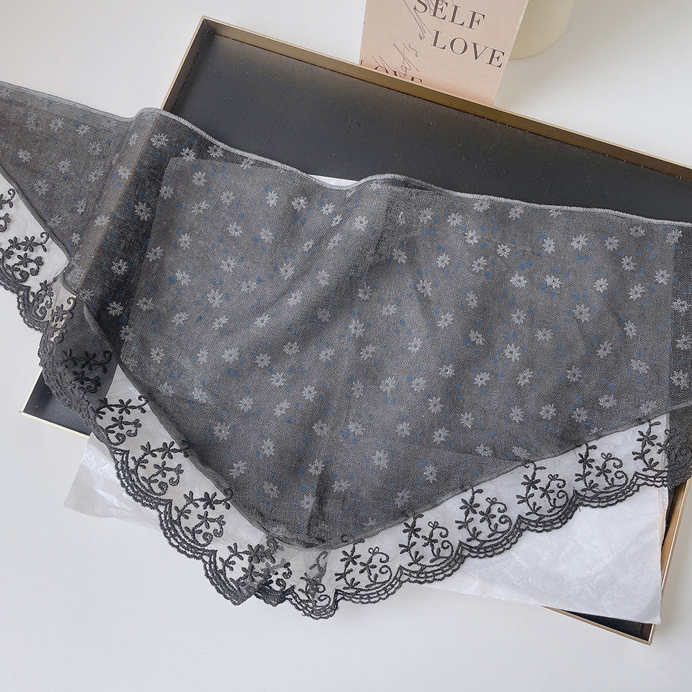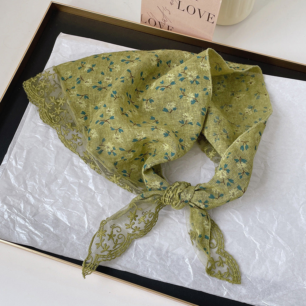 レースエッジラミートライアングルスカーフ 夏の旅スタイルに