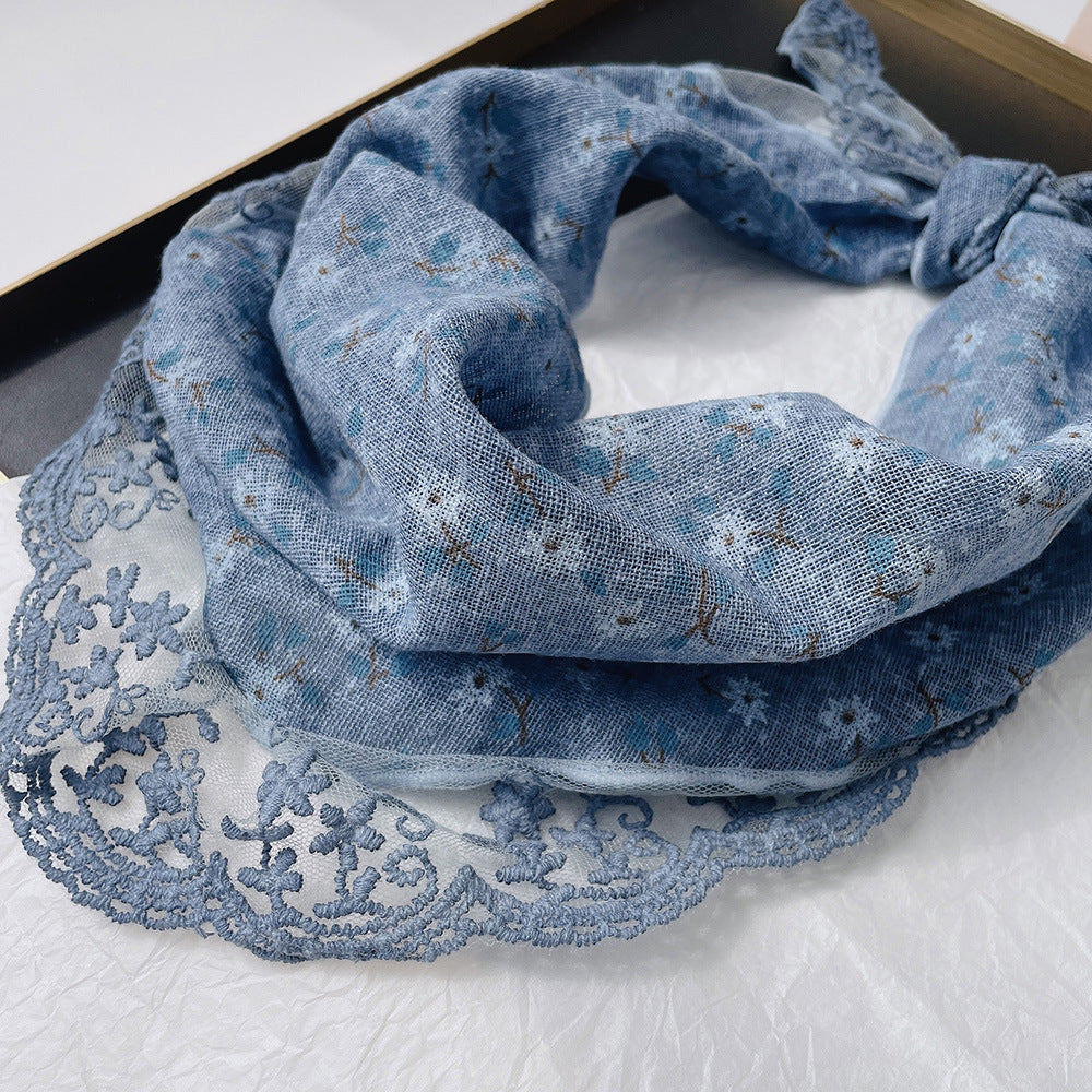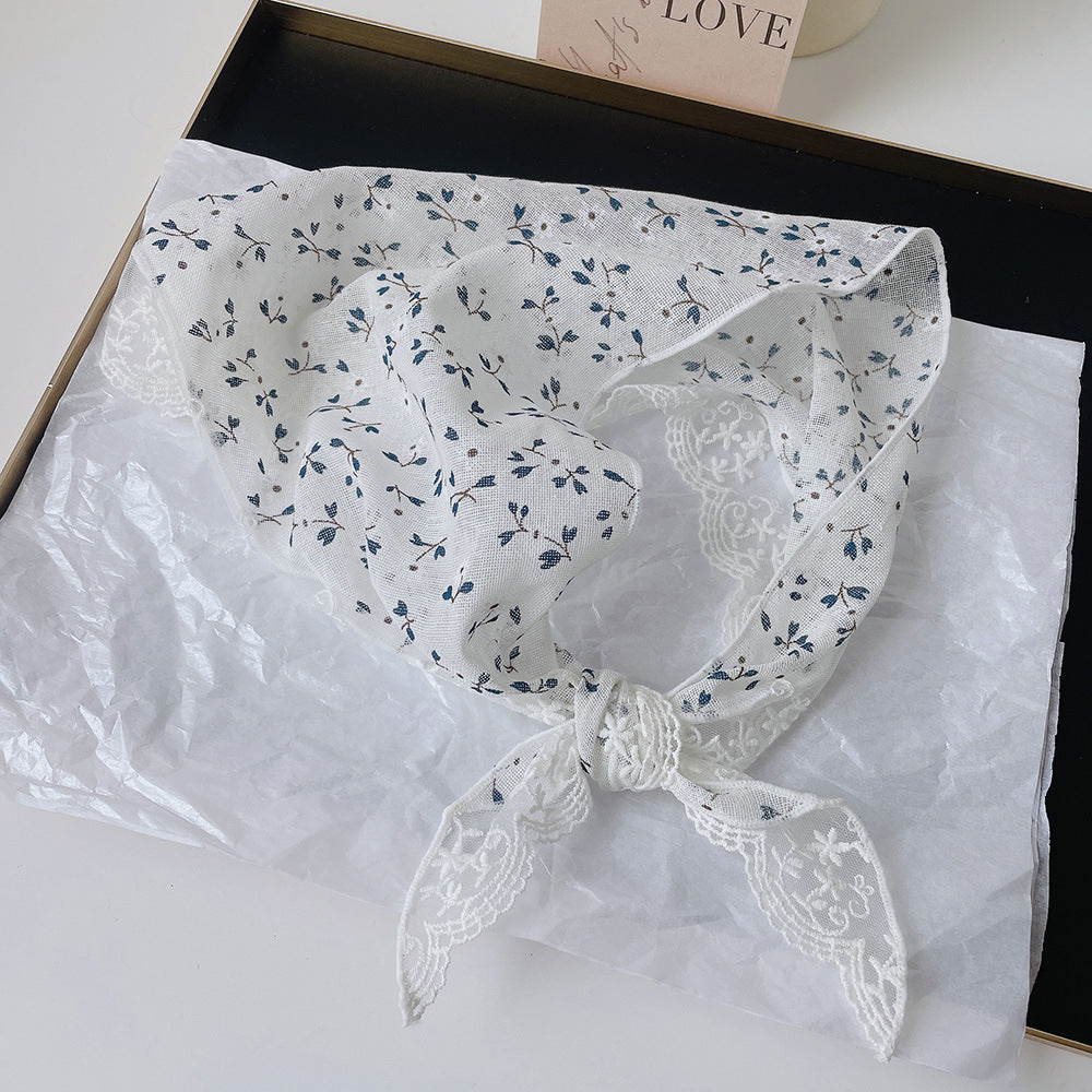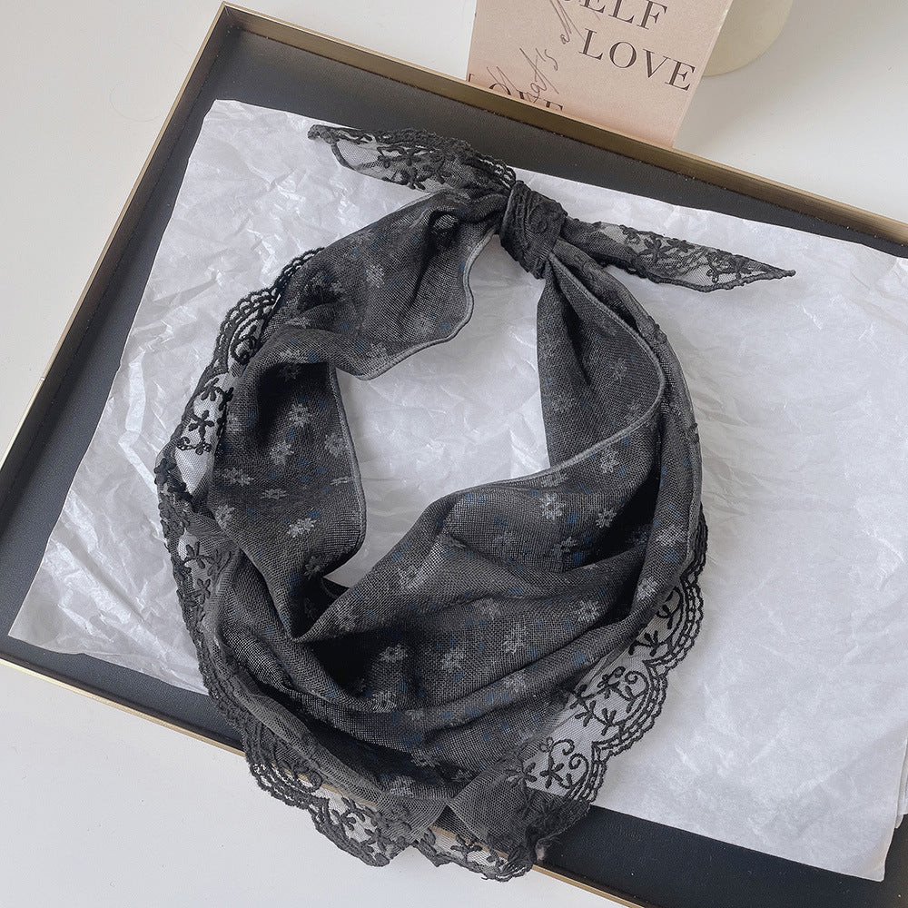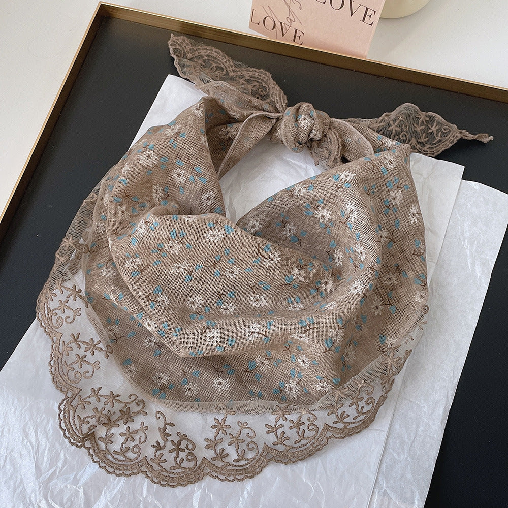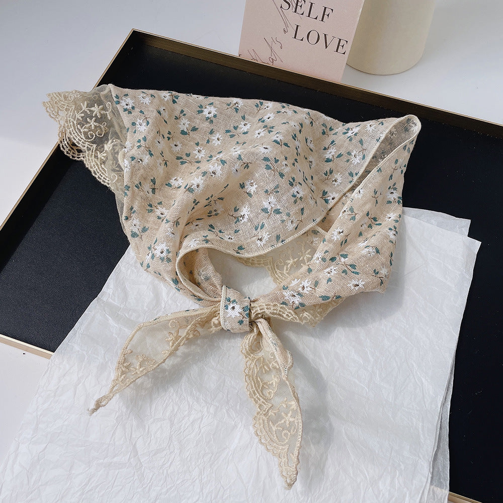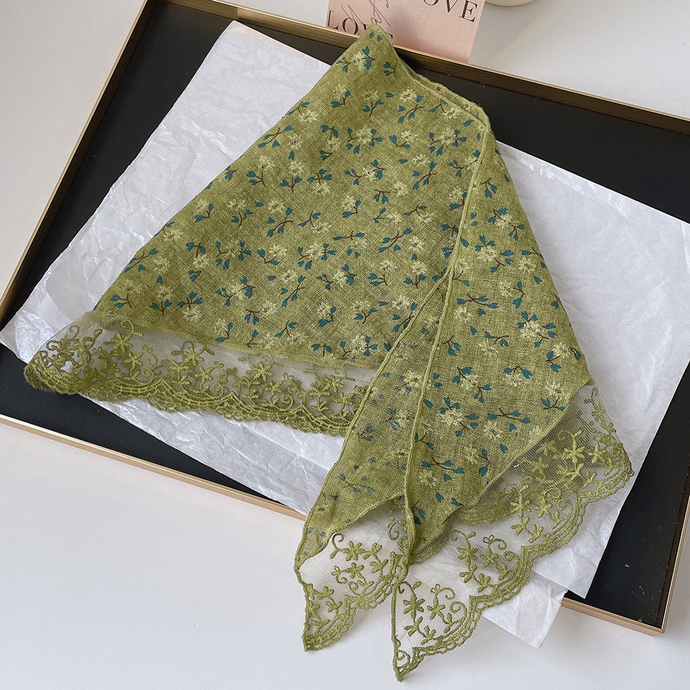レースエッジラミートライアングルスカーフ 夏の旅スタイルに