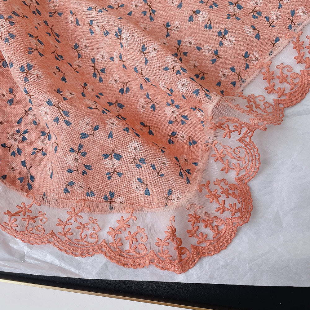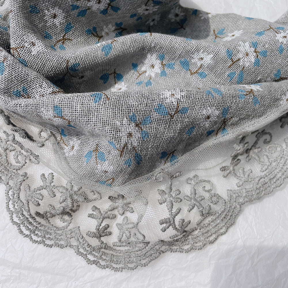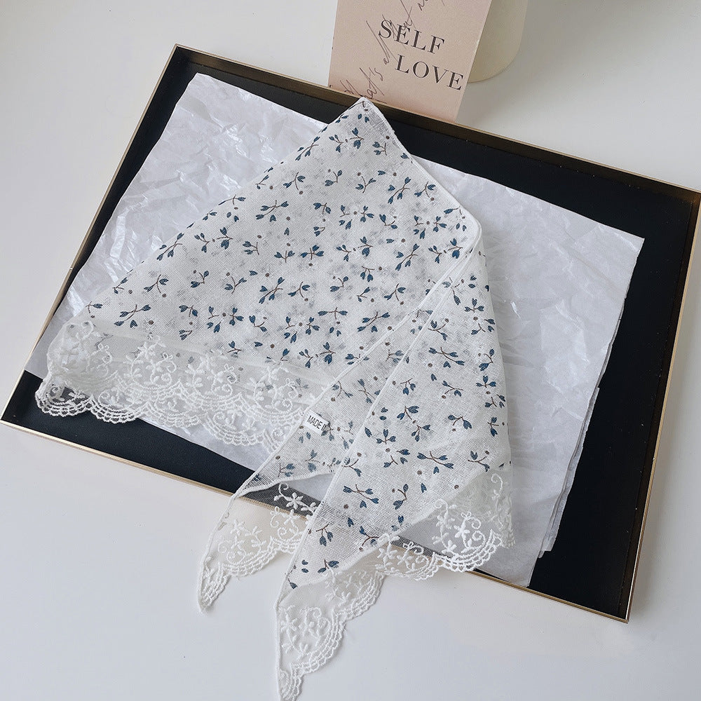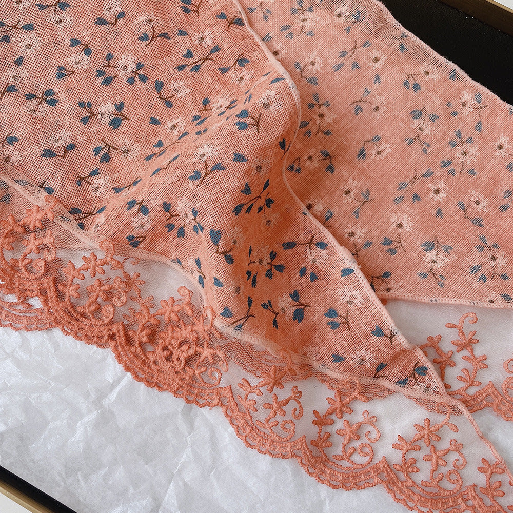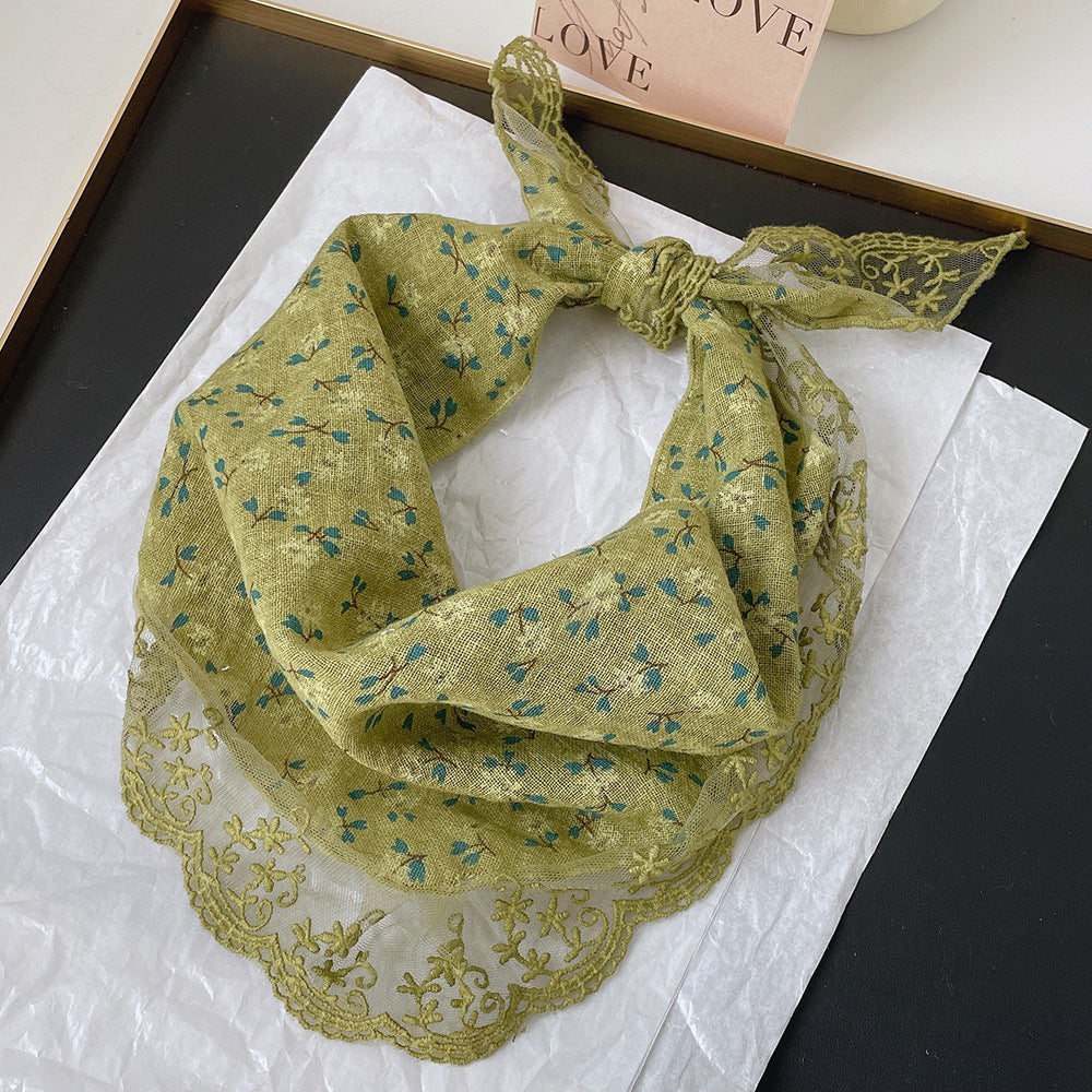 レースエッジラミートライアングルスカーフ 夏の旅スタイルに