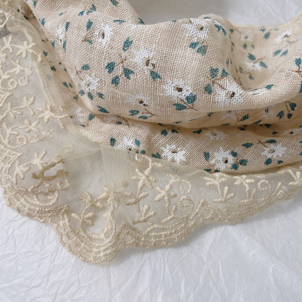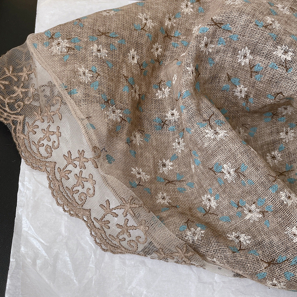 kawai-profileレースエッジラミートライアングルスカーフ 夏の旅スタイルに