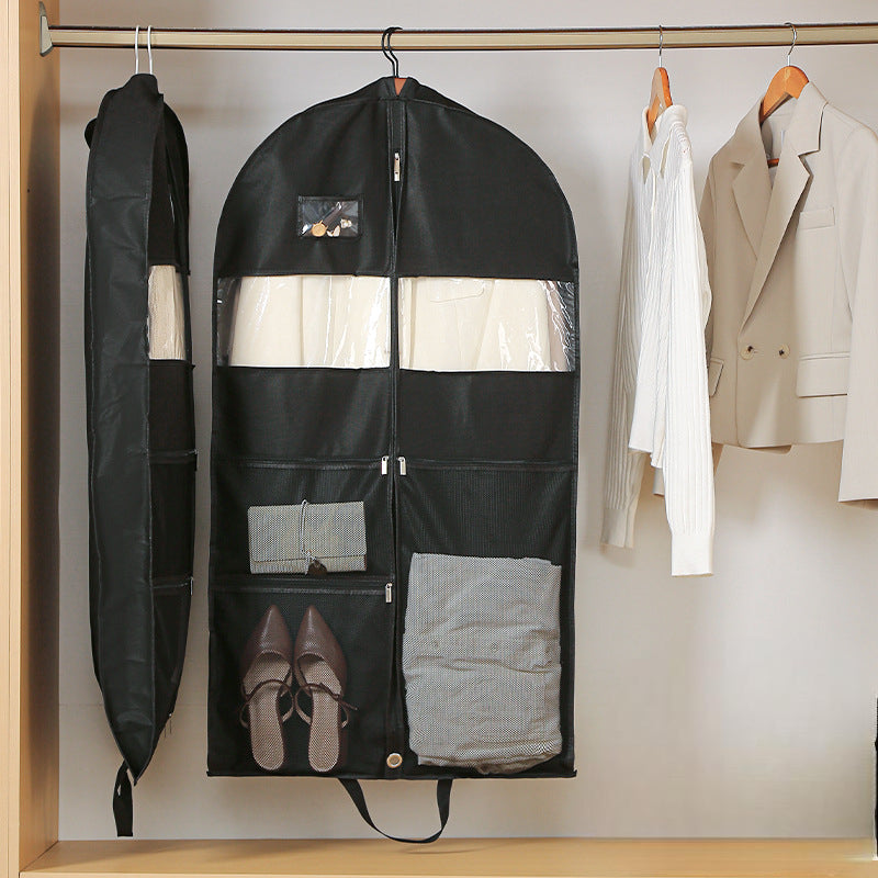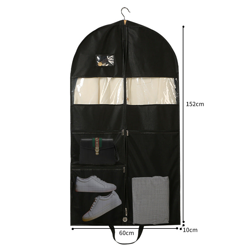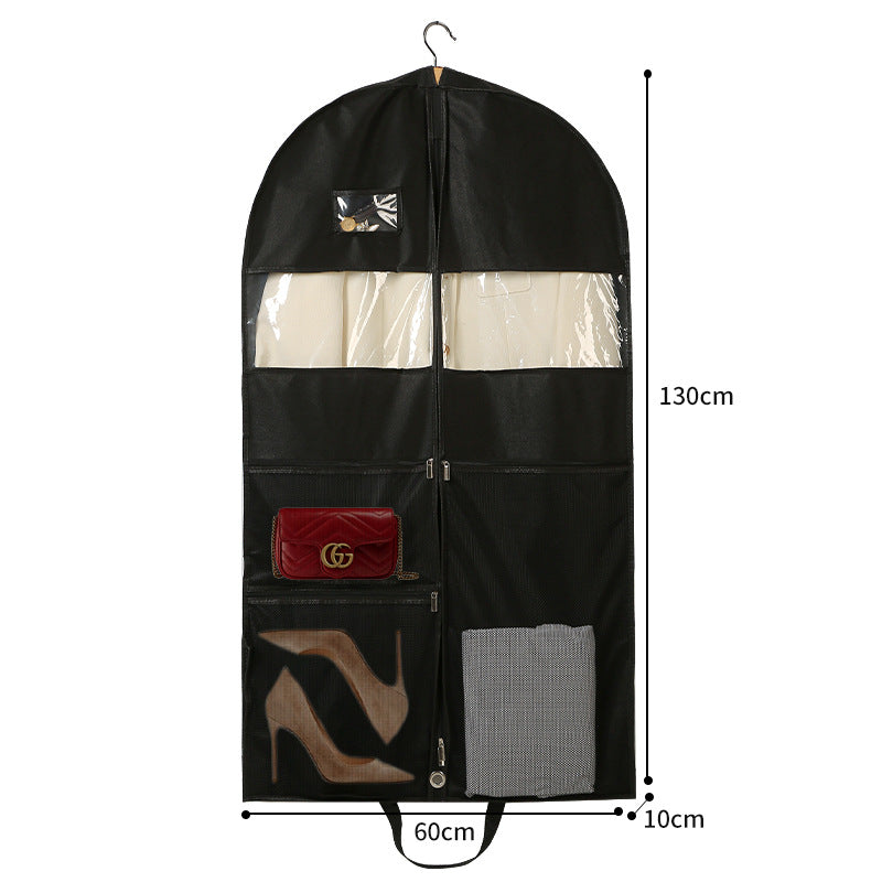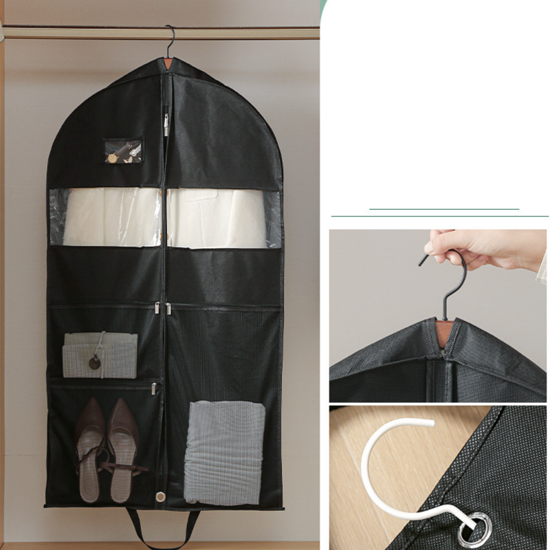 多機能吊り下げ式厚手不織布ダストカバー付き衣類収納バッグ