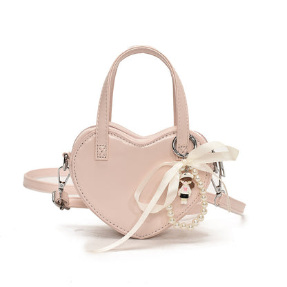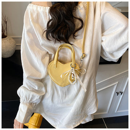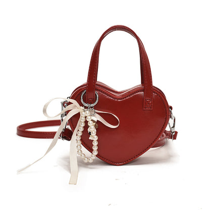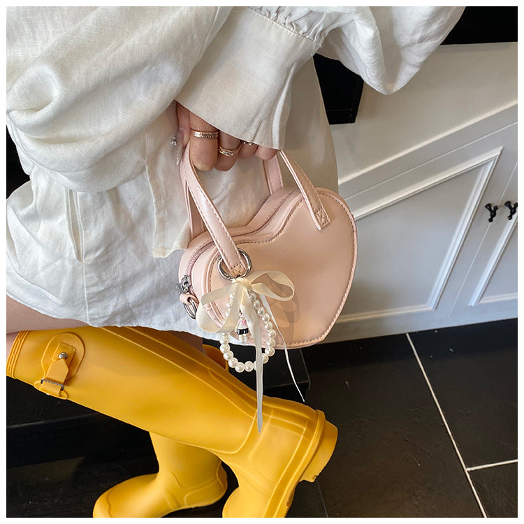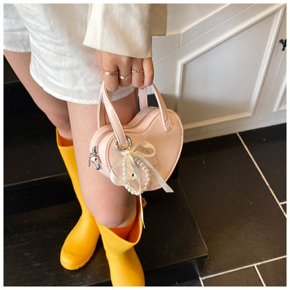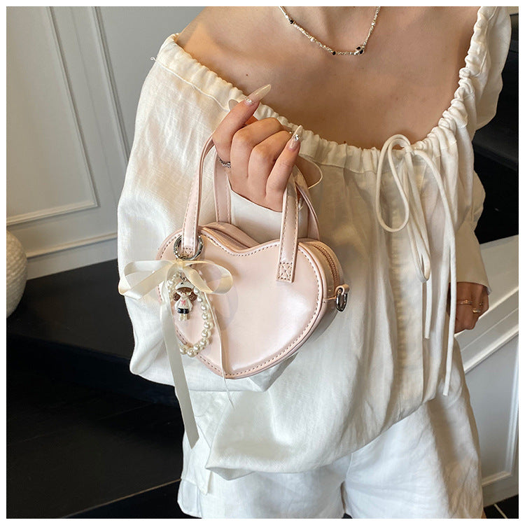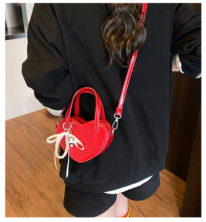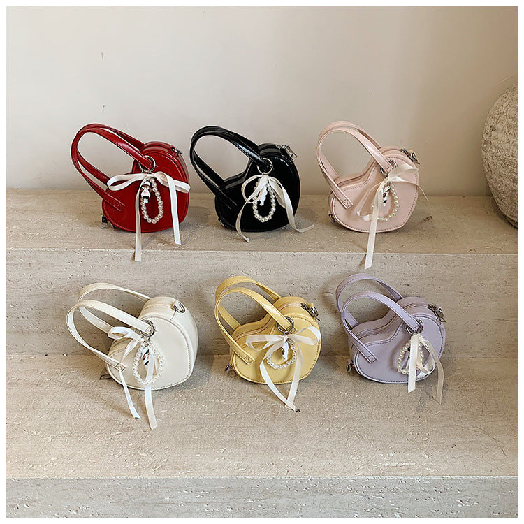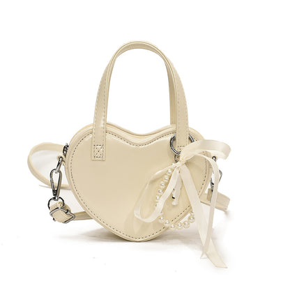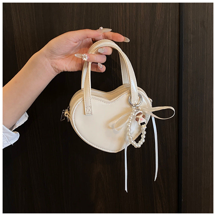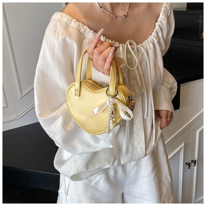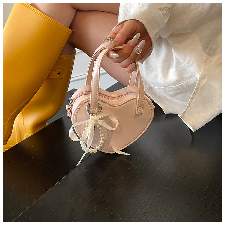 韓国ガーリーハートパールリボンミニクロスボディバッグ 2025年夏新作