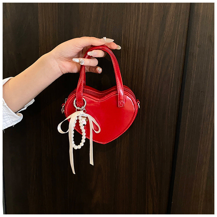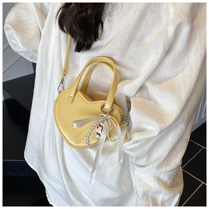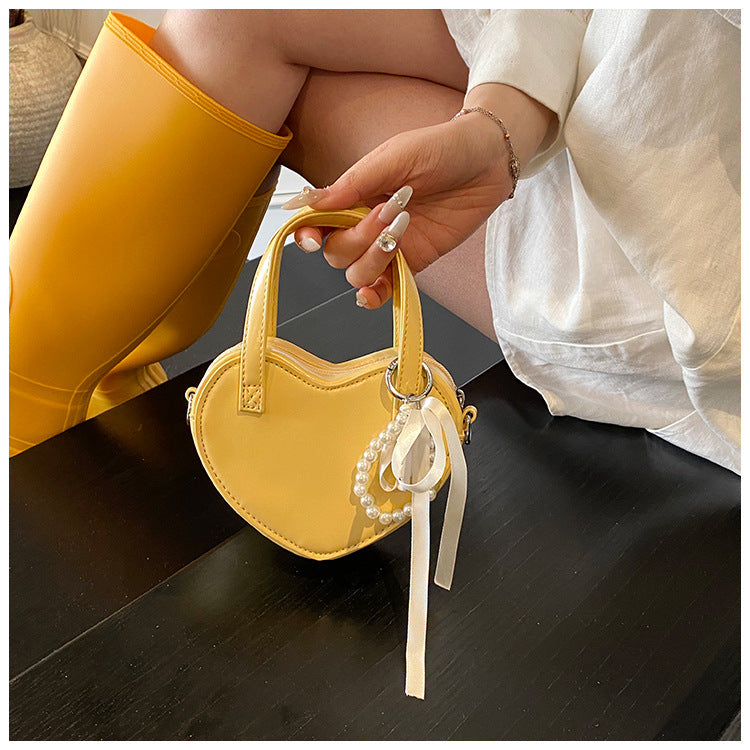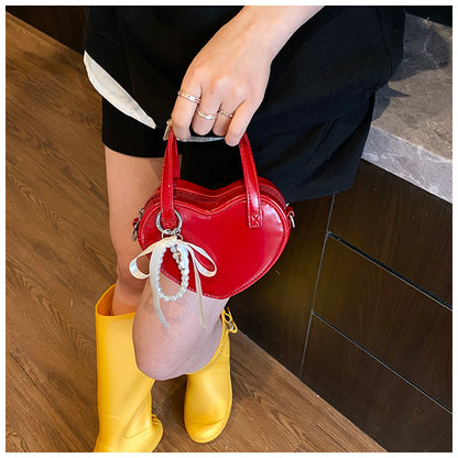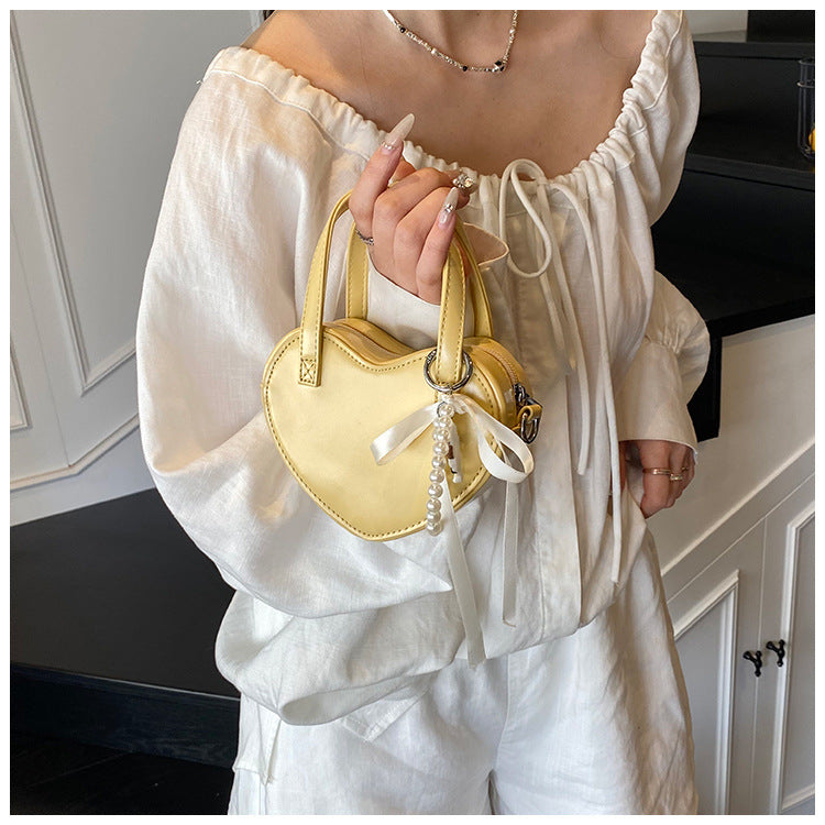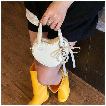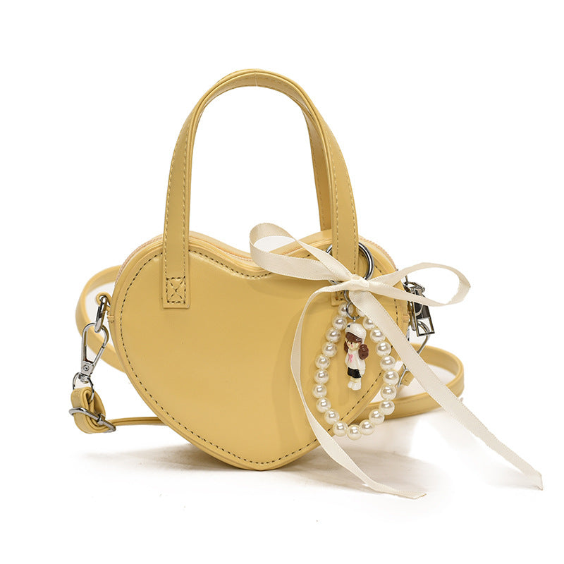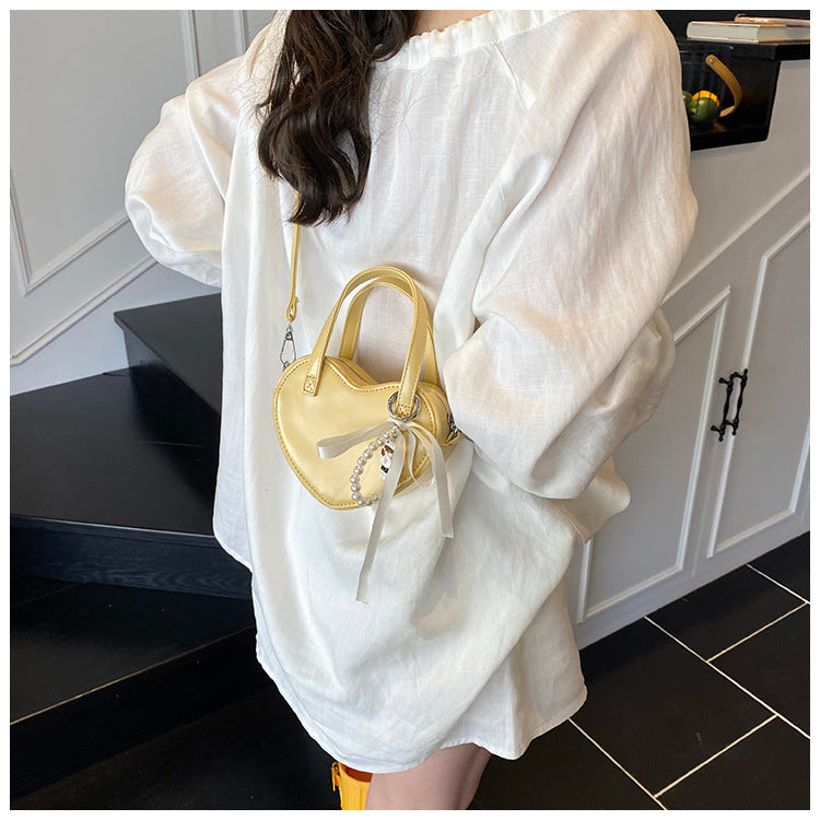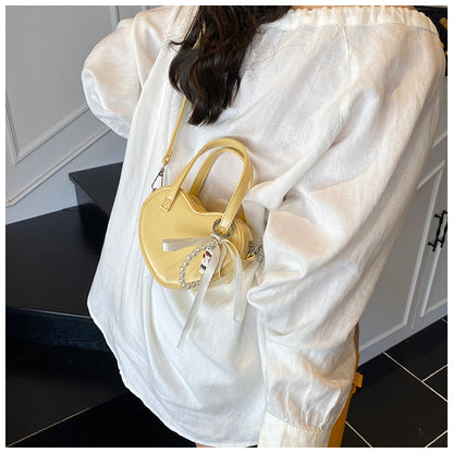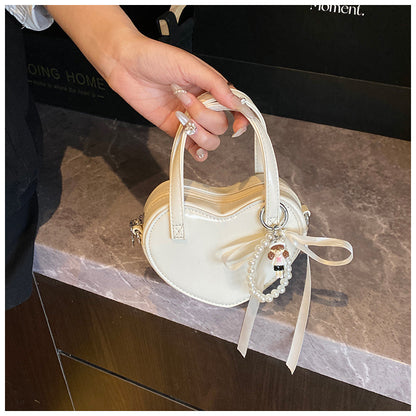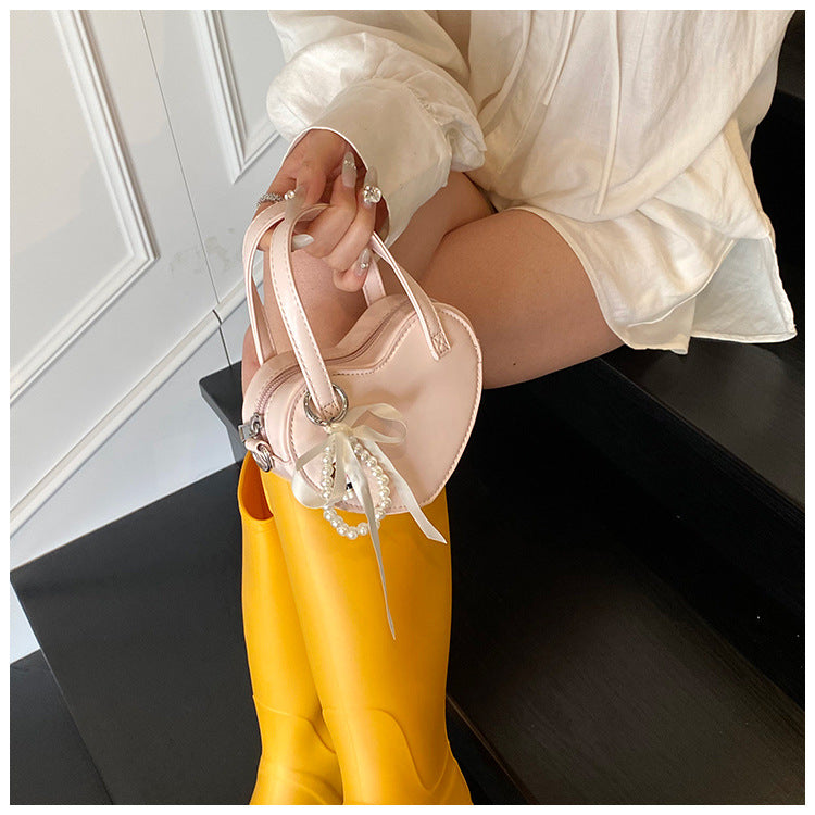 韓国ガーリーハートパールリボンミニクロスボディバッグ 2025年夏新作