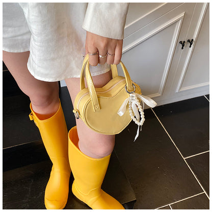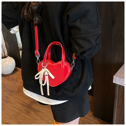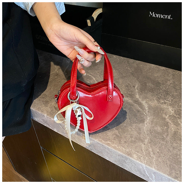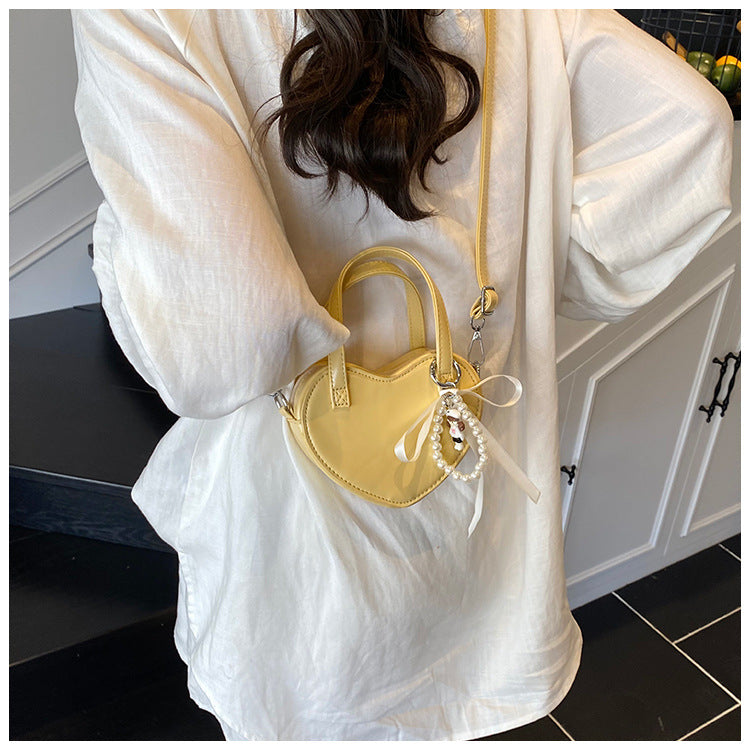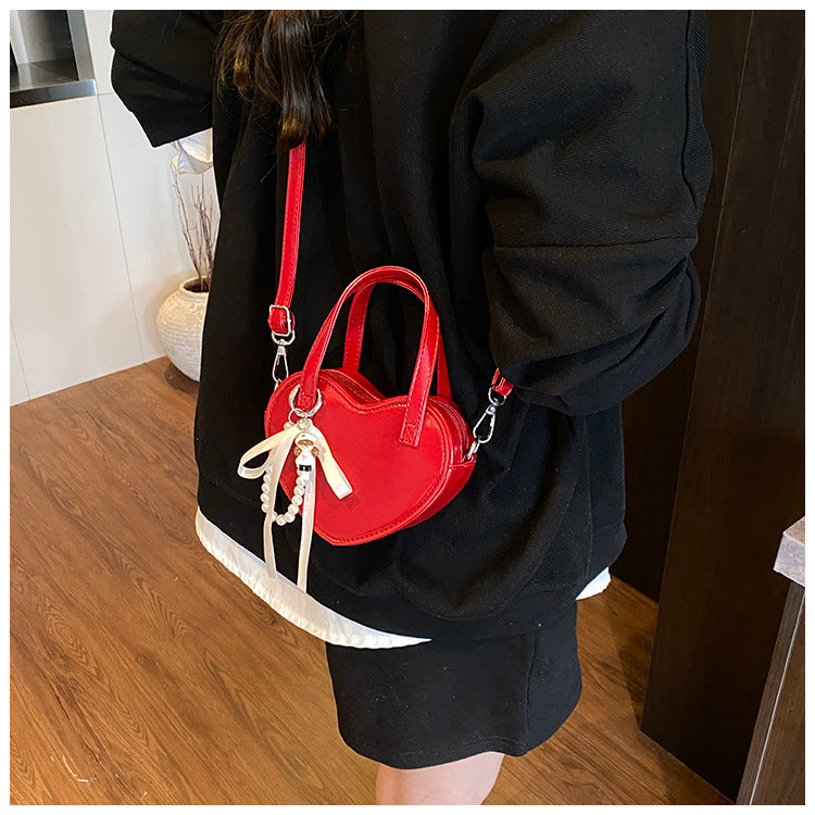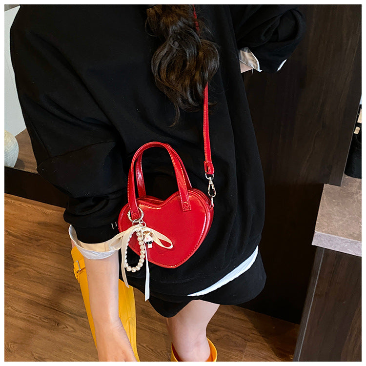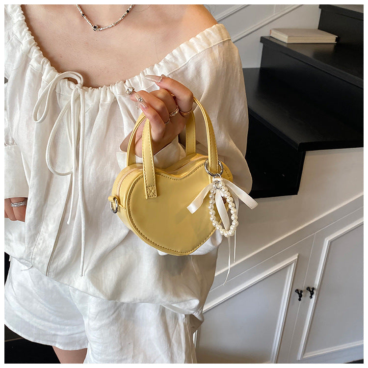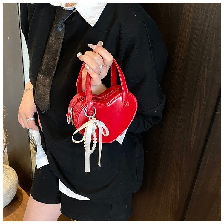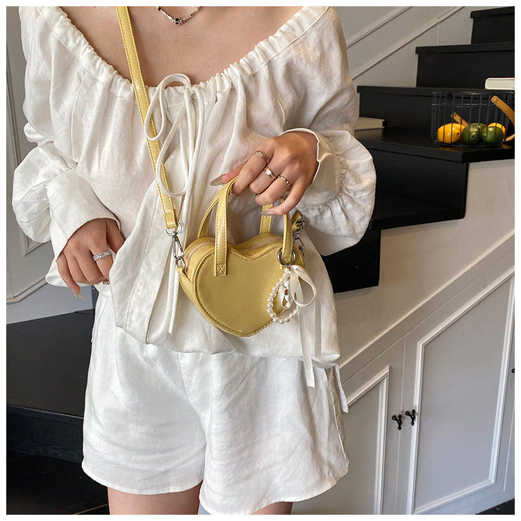 韓国ガーリーハートパールリボンミニクロスボディバッグ 2025年夏新作