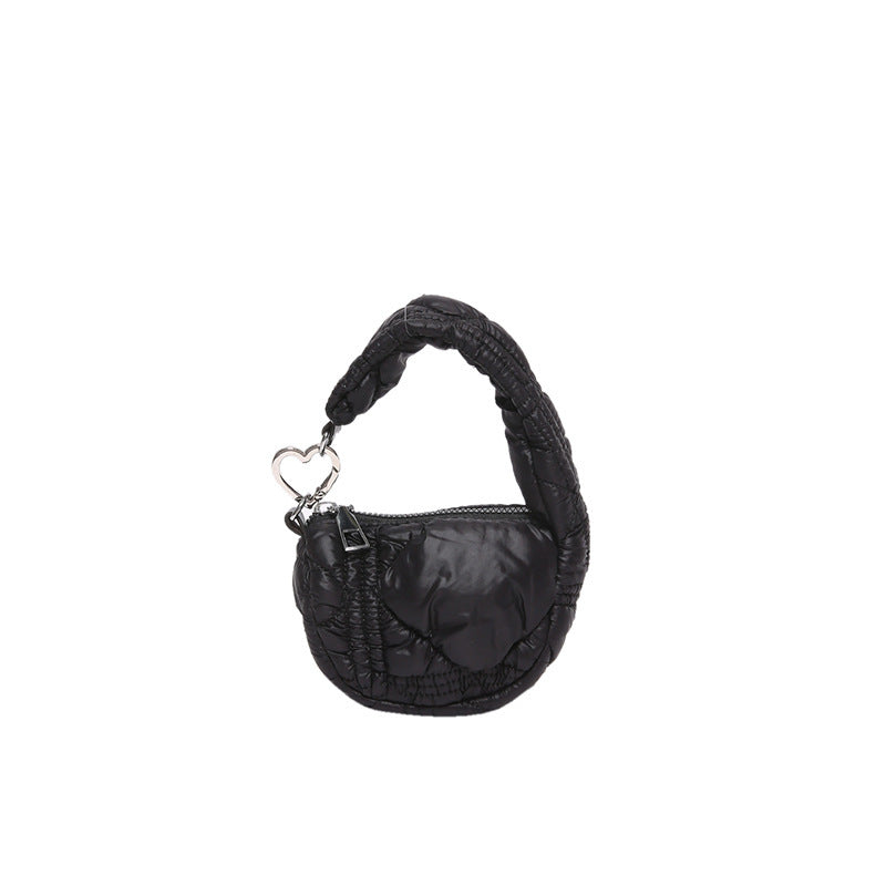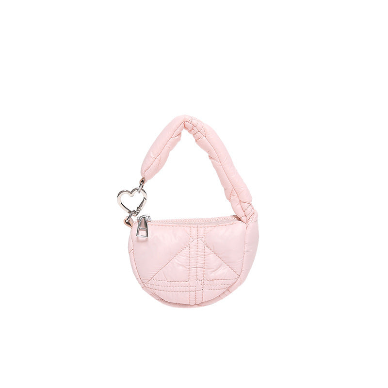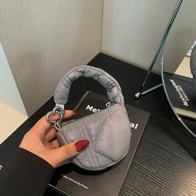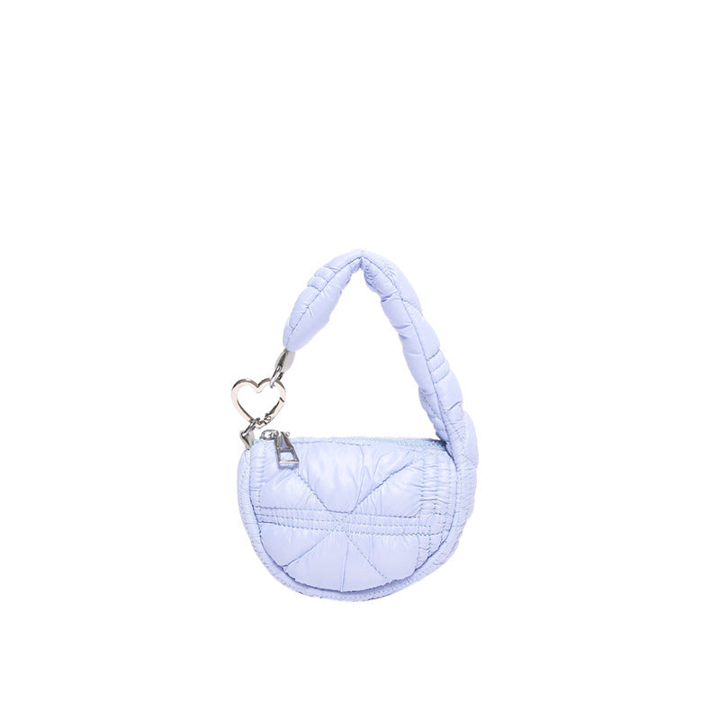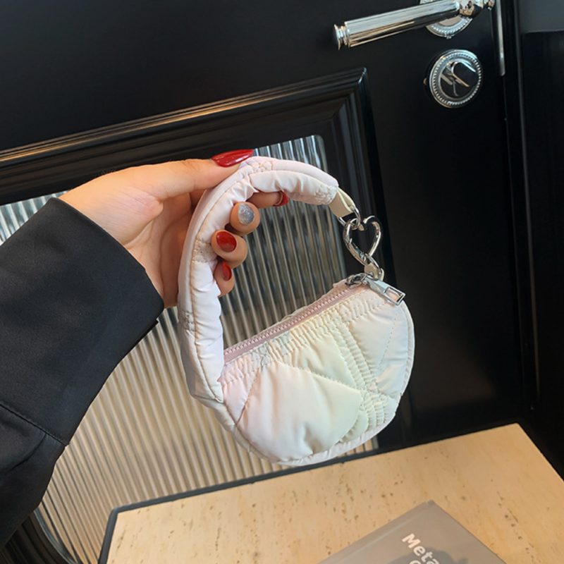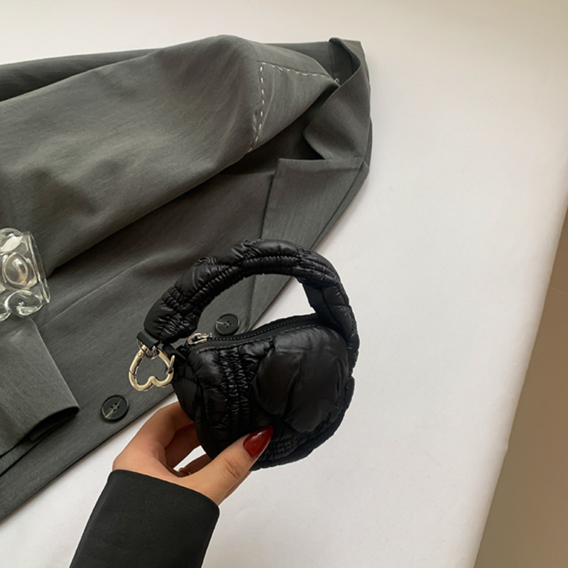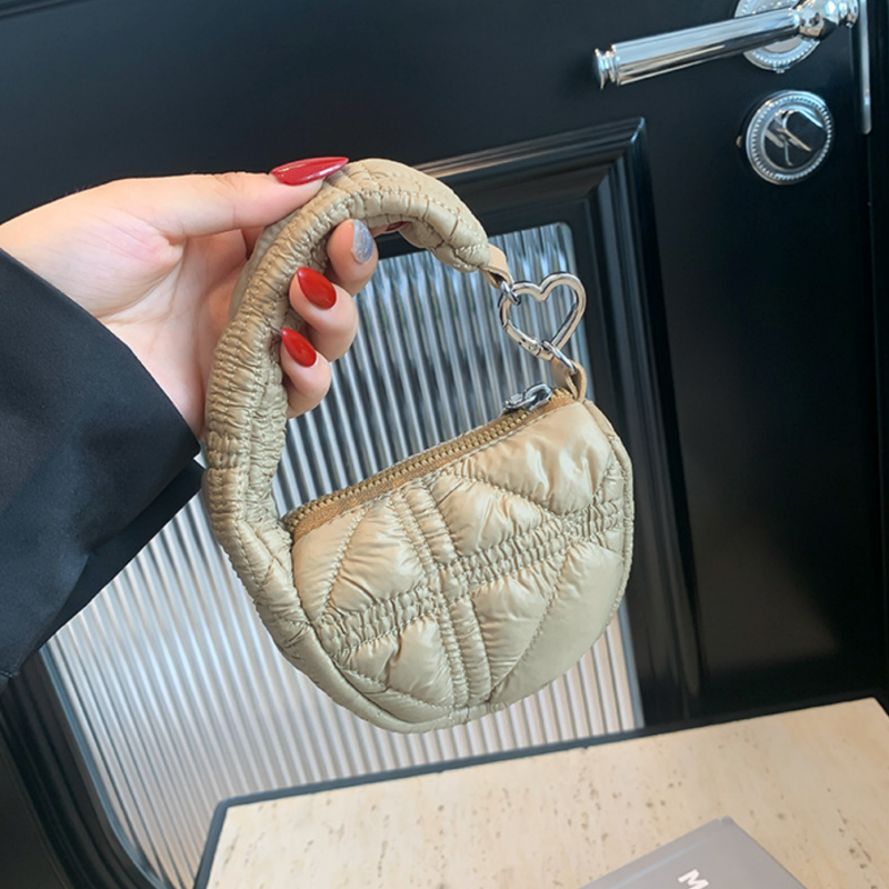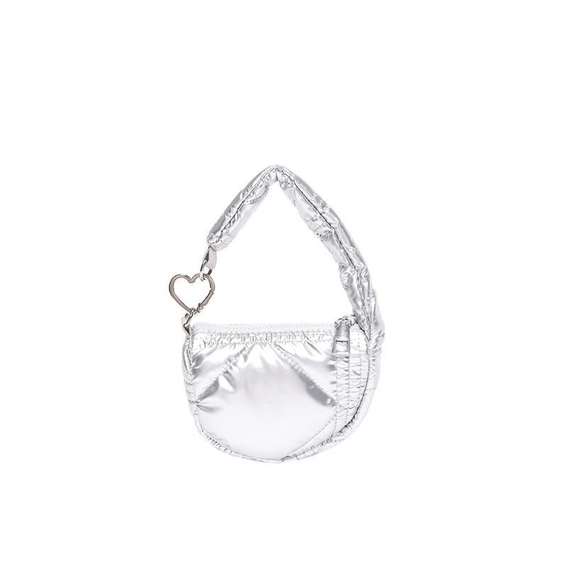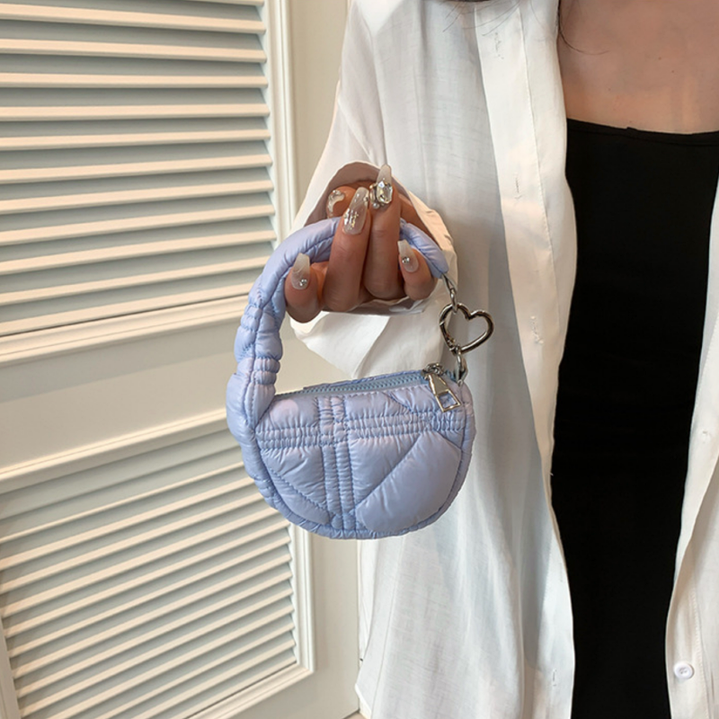 キルティングまたはソフトなプリーツ加工が施された雲形のミニバッグ。