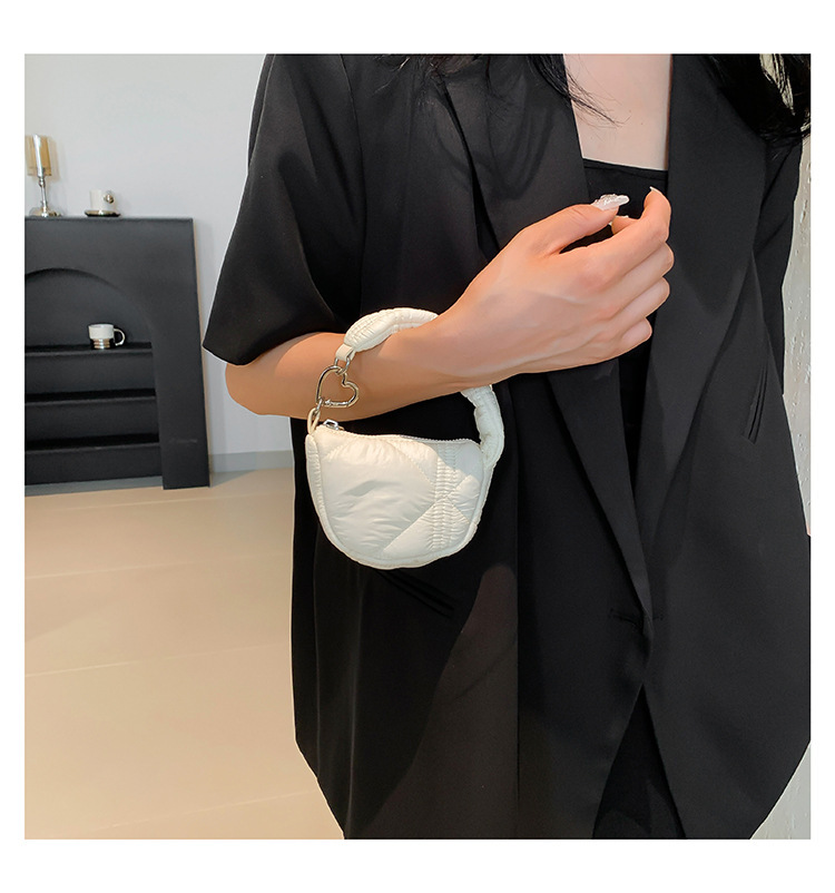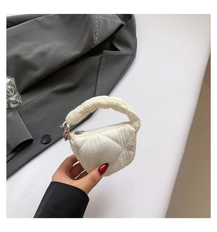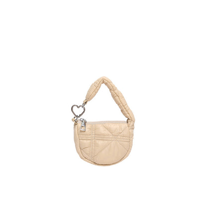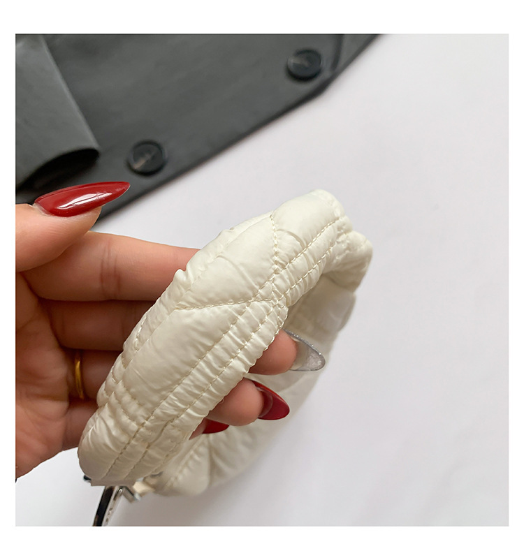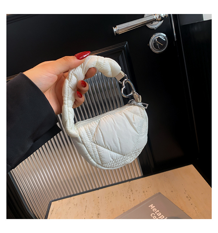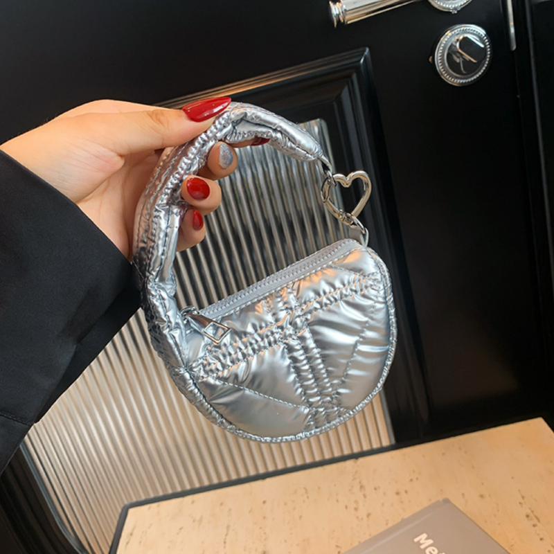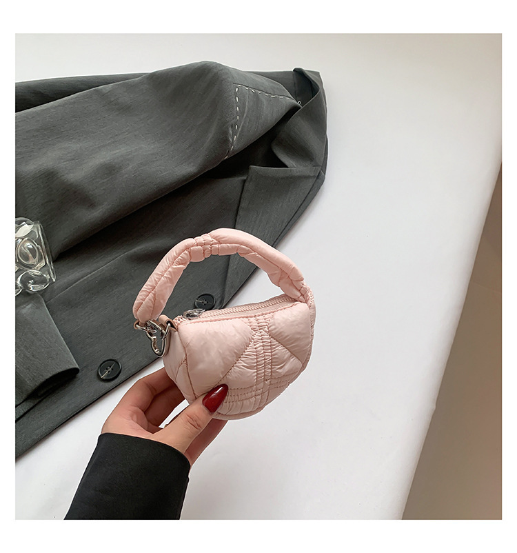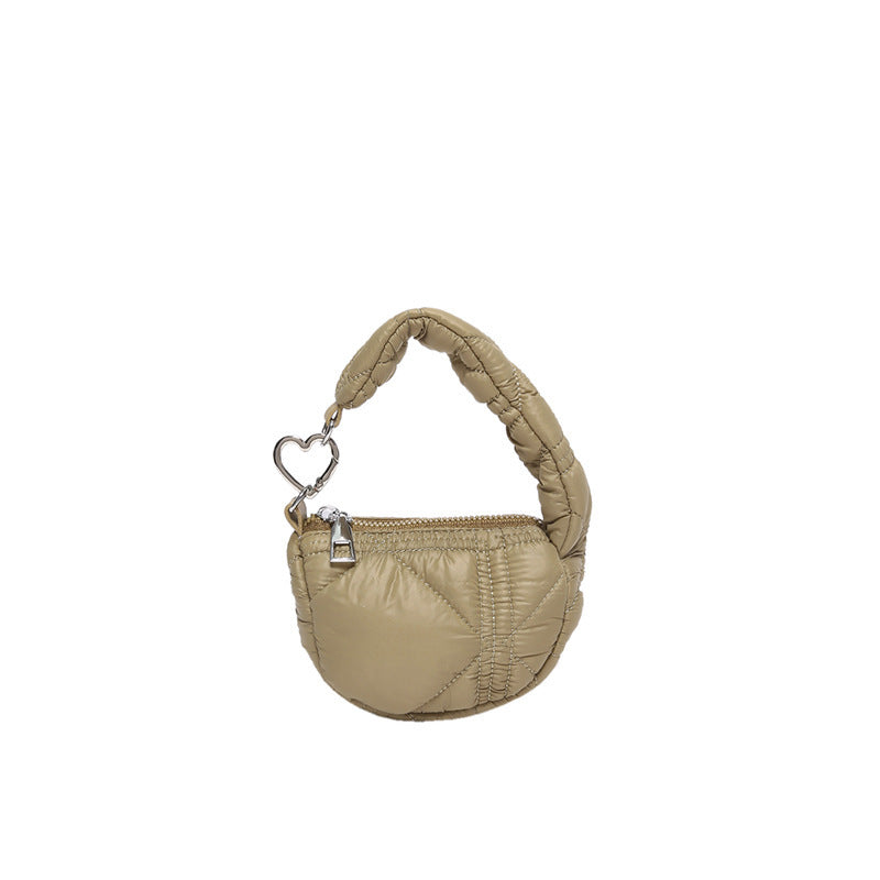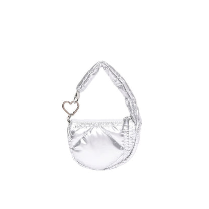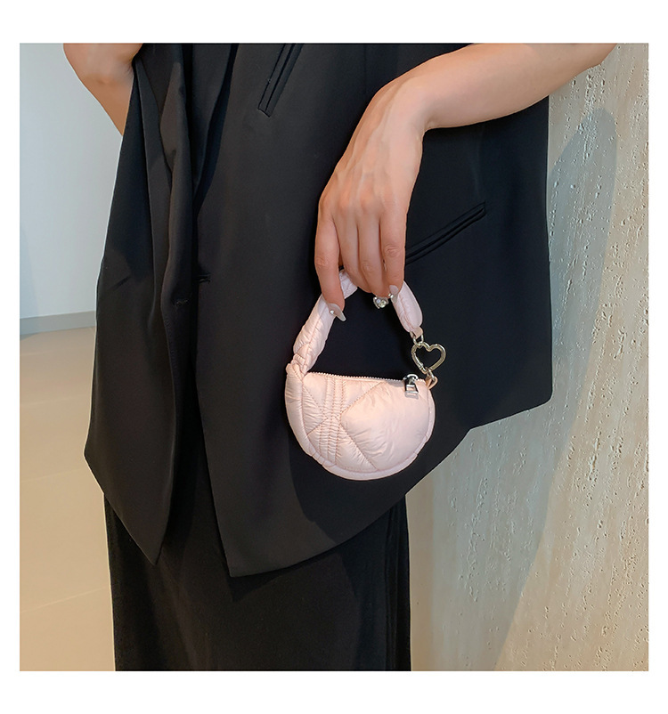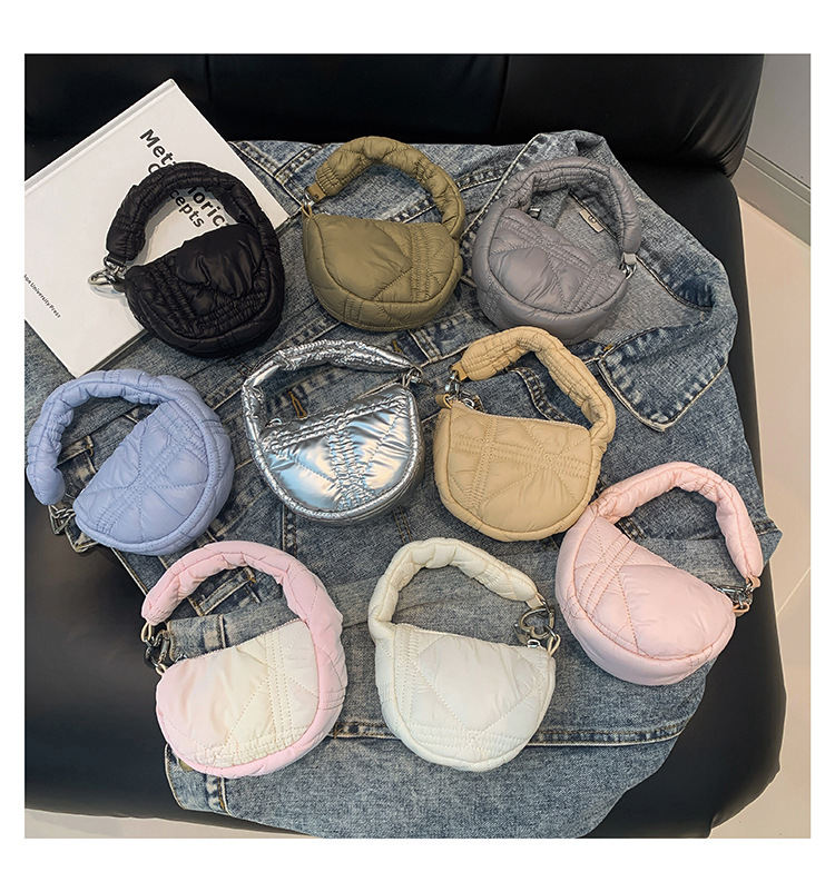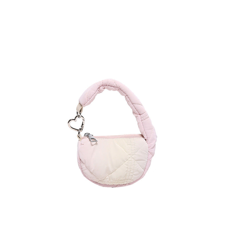 キルティングまたはソフトなプリーツ加工が施された雲形のミニバッグ。