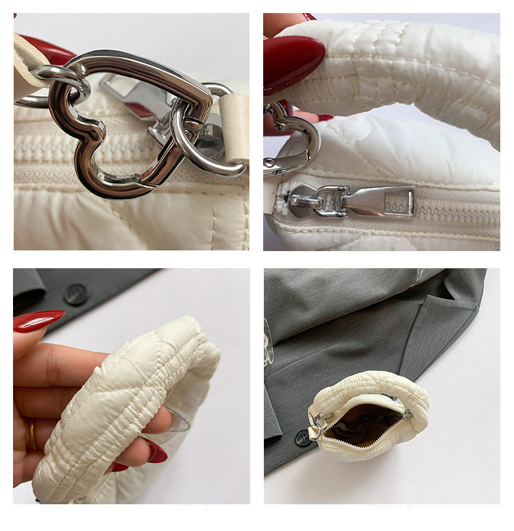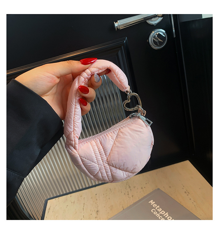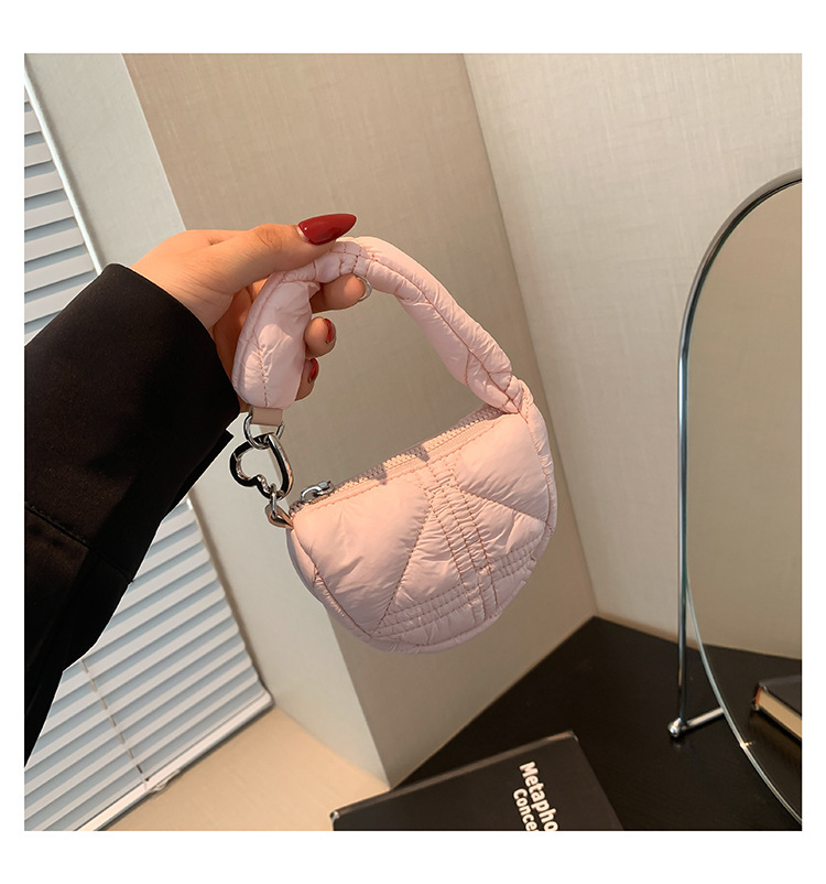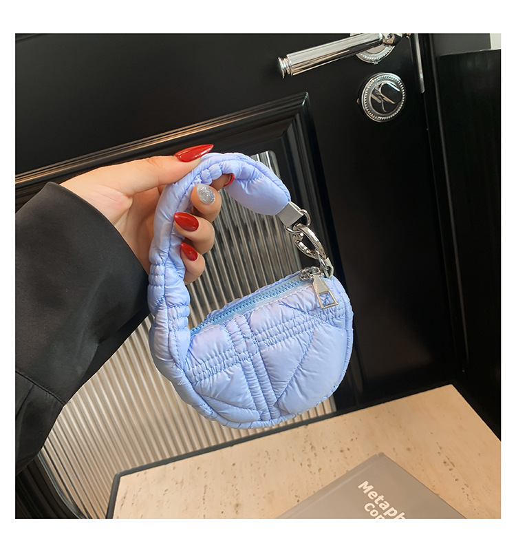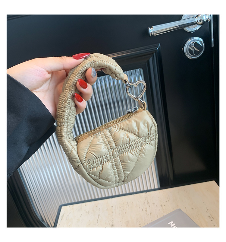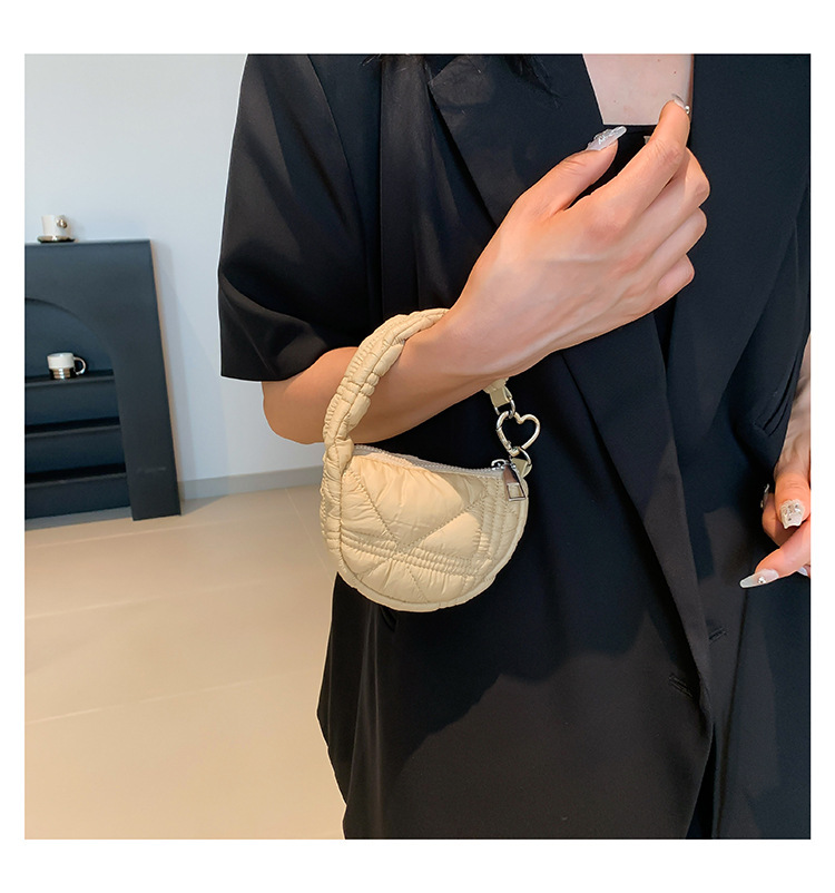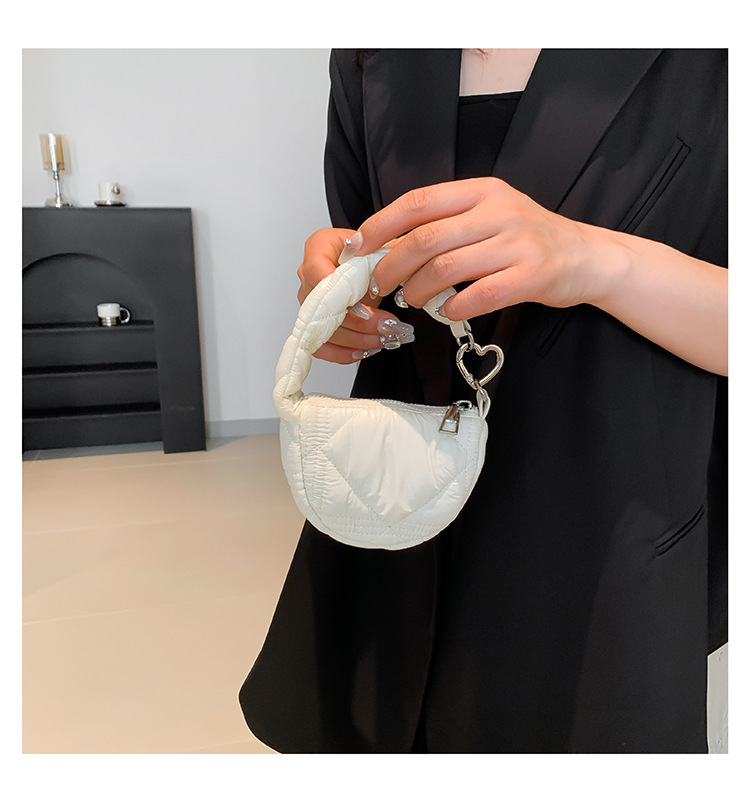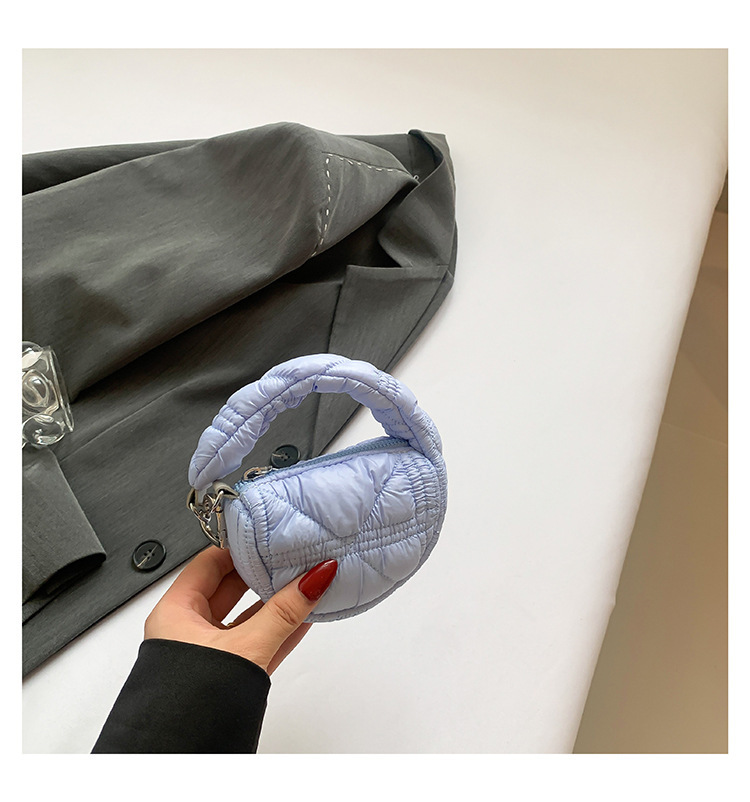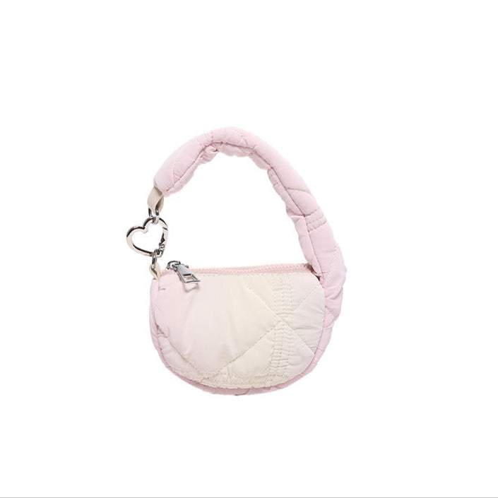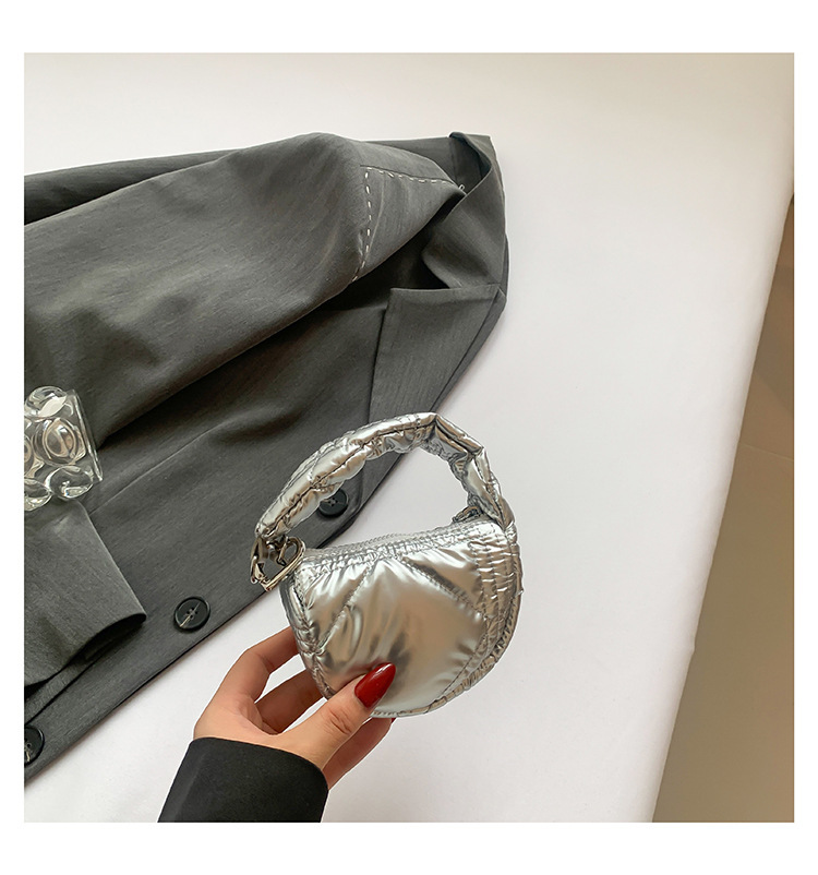 キルティングまたはソフトなプリーツ加工が施された雲形のミニバッグ。
