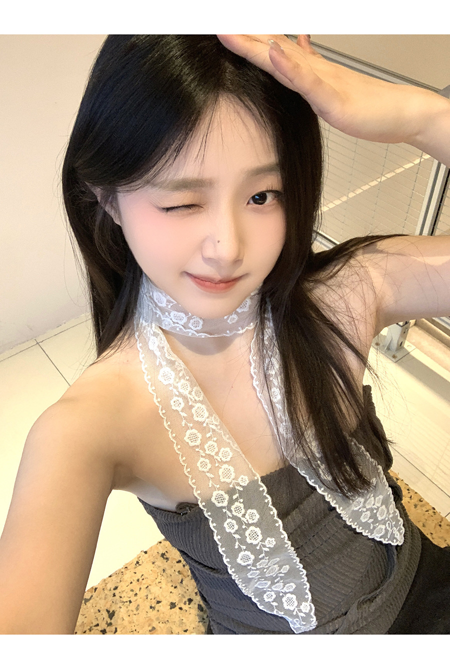 韓国風ピュアセクシーな、花柄レースの極細ネックチーフです。 繊細なレース素材が、首元を美しく、そしてちょっぴりセクシーに飾ります。 春の軽やかなファッションに合わせやすく、エレガントな雰囲気をプラス。 普段使いはもちろん、パーティーシーンにもおすすめです。