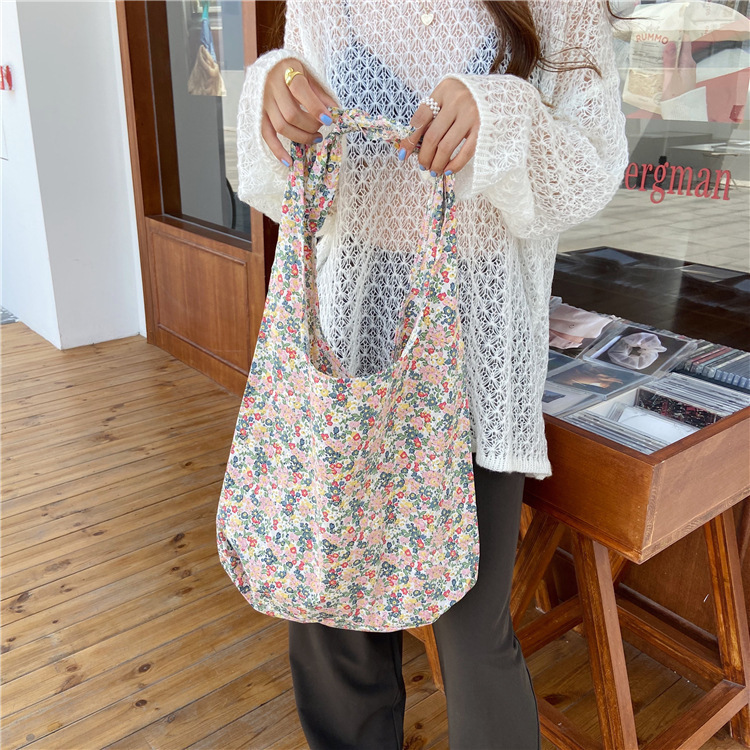 🌷 韓国風 花柄 結ぶハンドル トートバッグ - 大容量/カジュアル 🌷