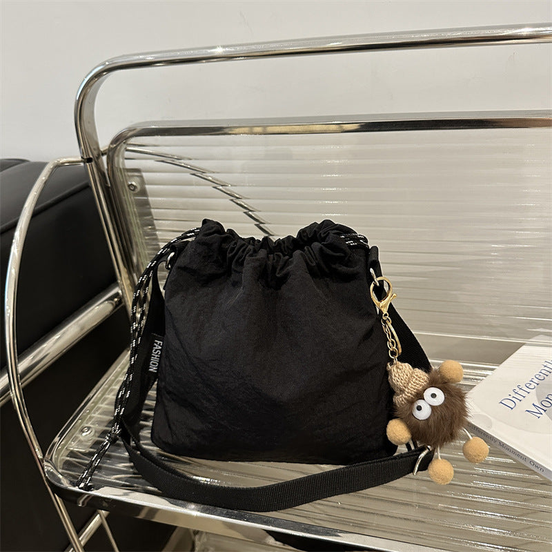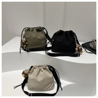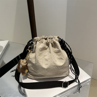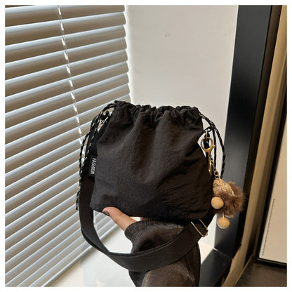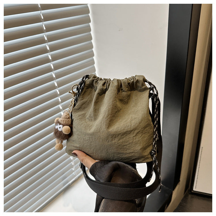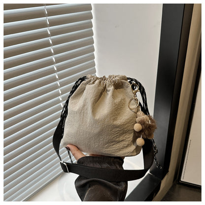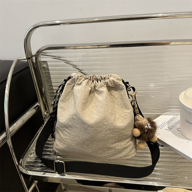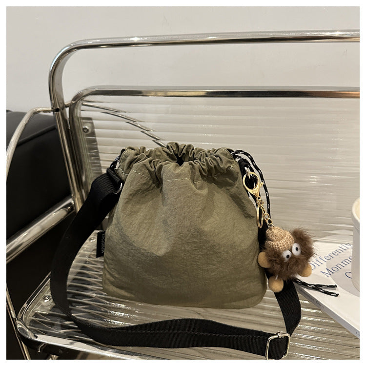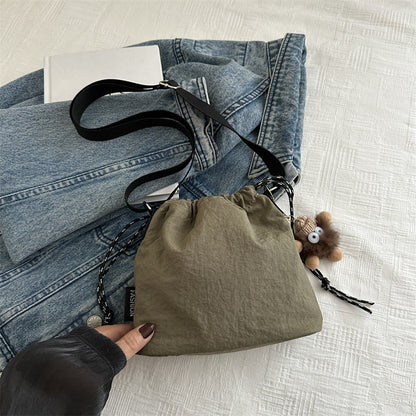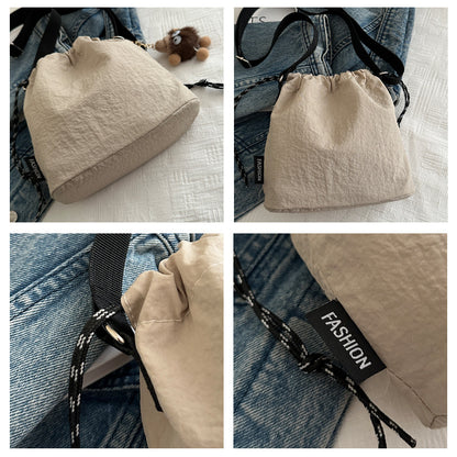 カジュアルナイロンニッチショルダーバッグ プリーツバケット巾着ショルダーバッグ