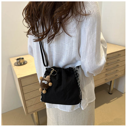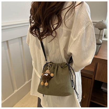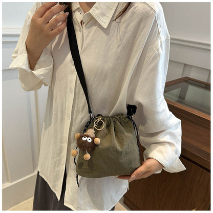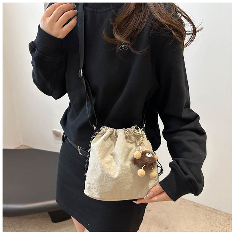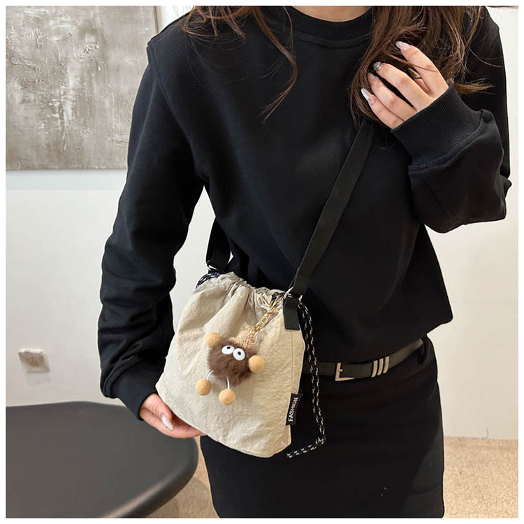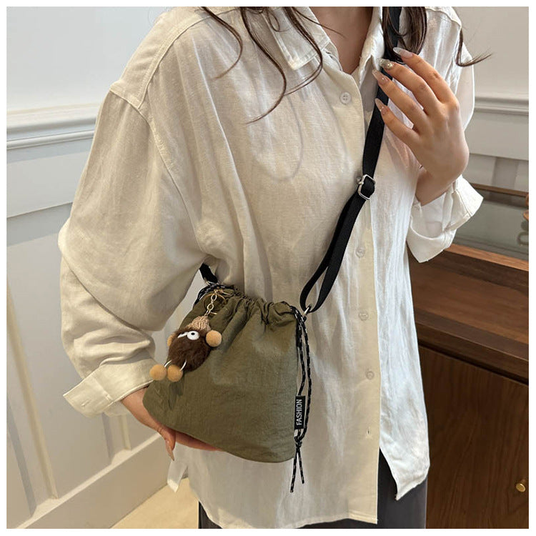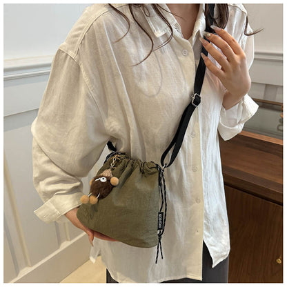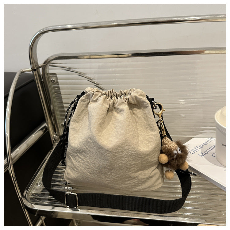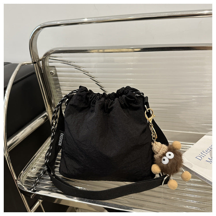カジュアルナイロンニッチショルダーバッグ プリーツバケット巾着ショルダーバッグ