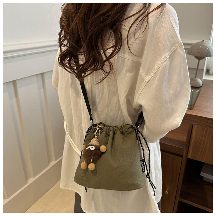 kawai-profileカジュアルナイロンニッチショルダーバッグ プリーツバケット巾着ショルダーバッグ