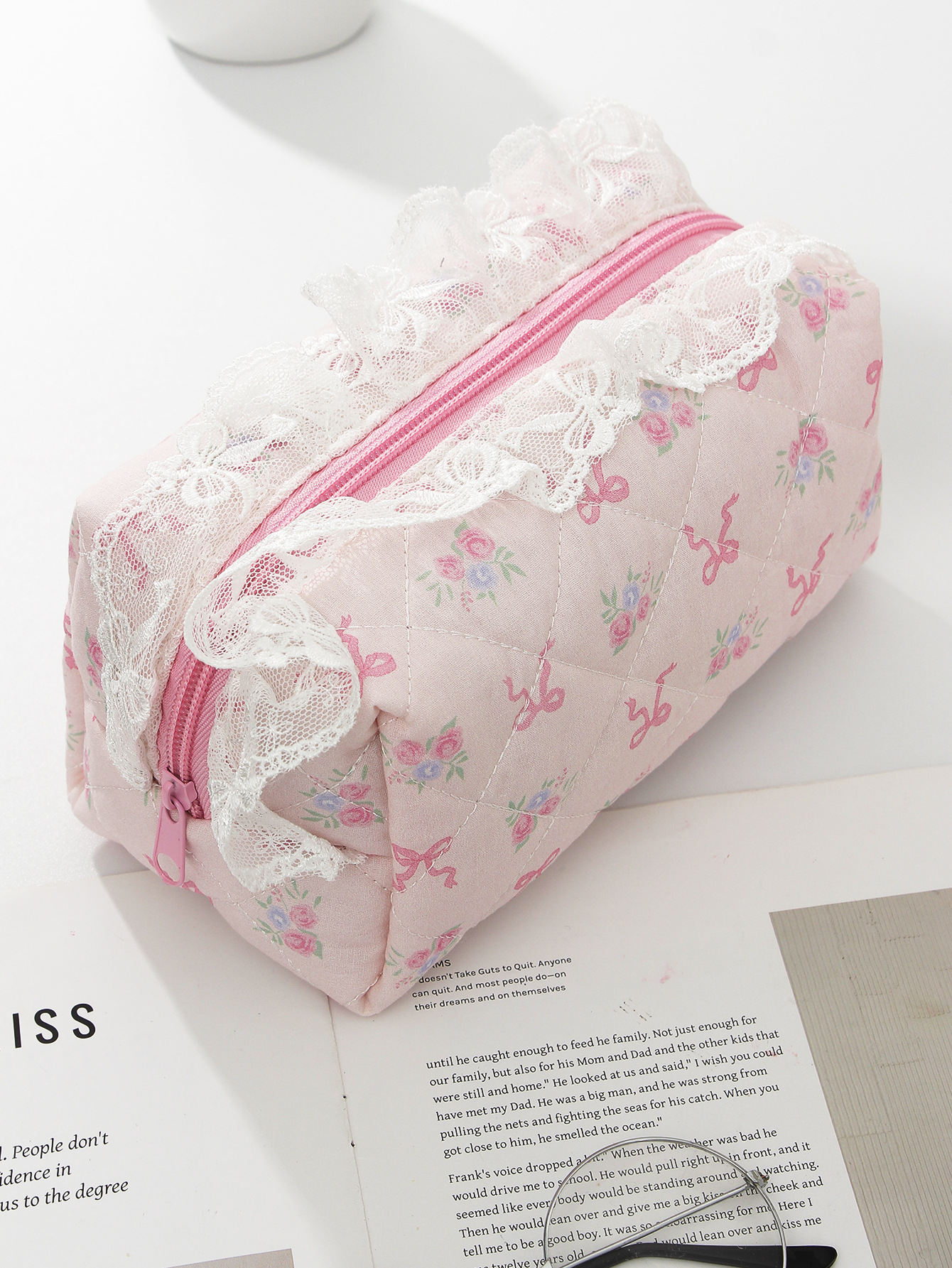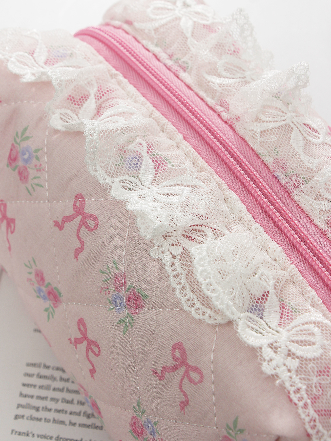 ガーリー韓国レースリボンキルティング化粧・トイレタリーバッグ