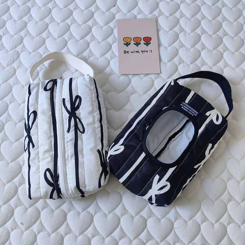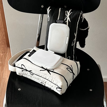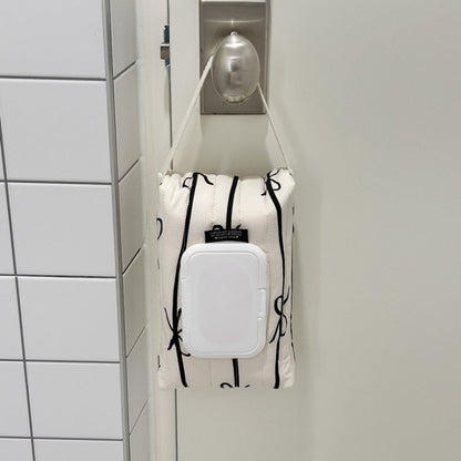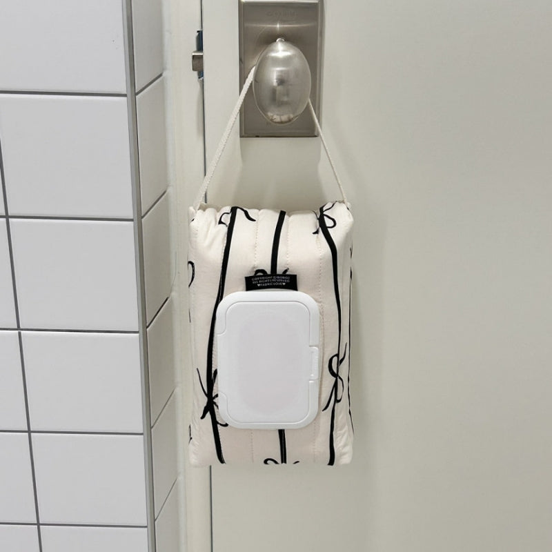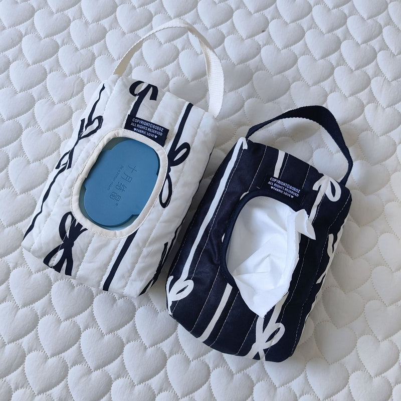 キルティングリボン柄 ハンギングウェットワイプポーチ 韓国風リボンキルティングベビーカーポーチ