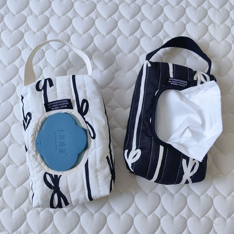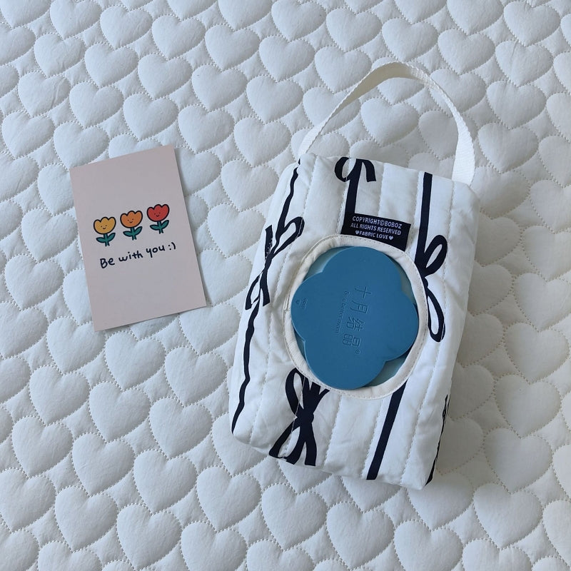 kawai-profileキルティングリボン柄 ハンギングウェットワイプポーチ 韓国風リボンキルティングベビーカーポーチ