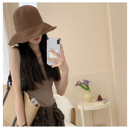 2025年新作のシンプルで多用途なペーパーニットサンハット。