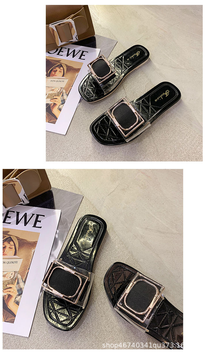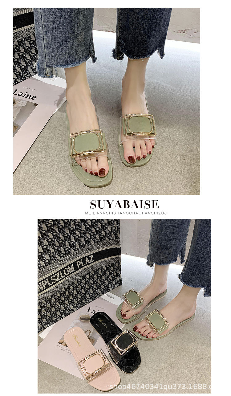 kawai-profileスクエアバックル付き 透明ゼリーカラースリッパ|レディース ヨーロッパ・アメリカンスタイル カジュアルスリッパ 2025年夏新作