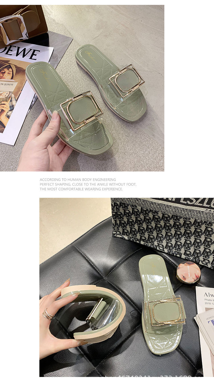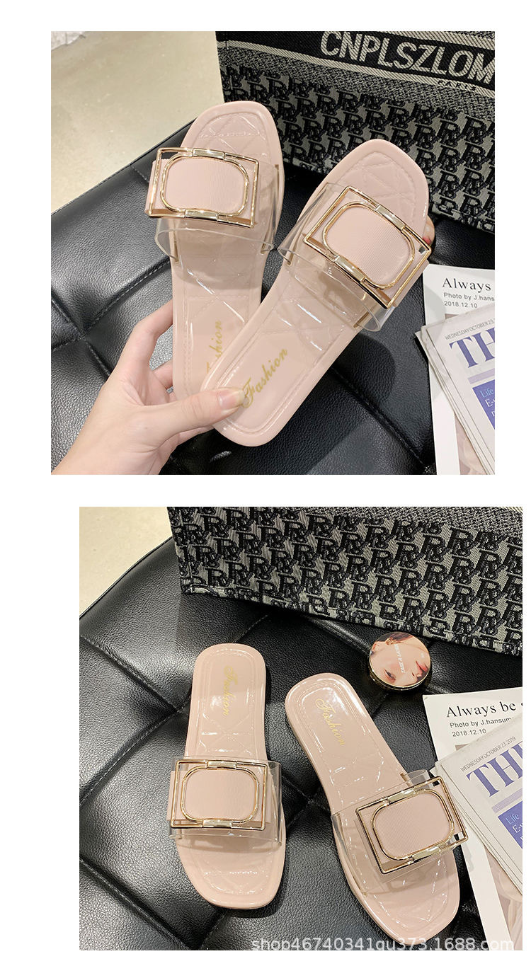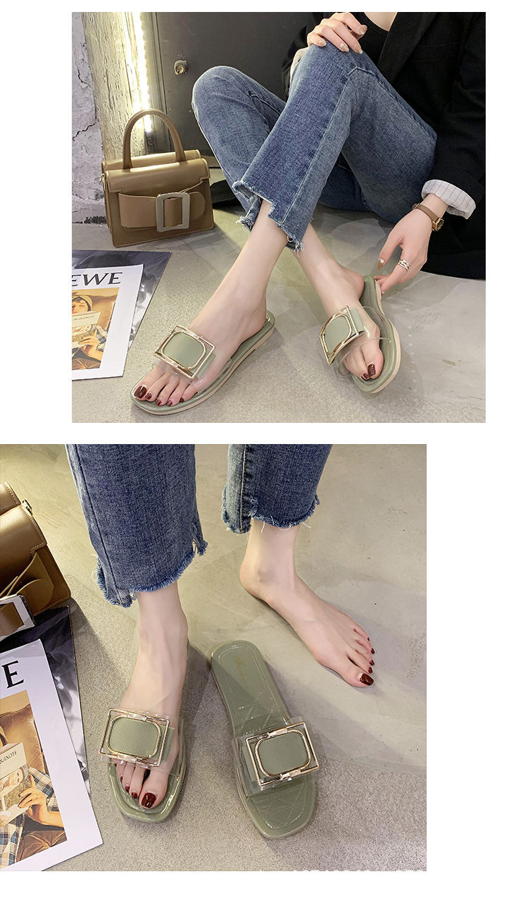 スクエアバックル付き 透明ゼリーカラースリッパ|レディース ヨーロッパ・アメリカンスタイル カジュアルスリッパ 2025年夏新作