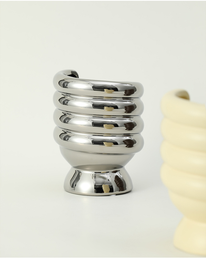 モダン スパイラル 植木鉢 (陶器製/クリーム色) - (観葉植物/卓上/手作り)