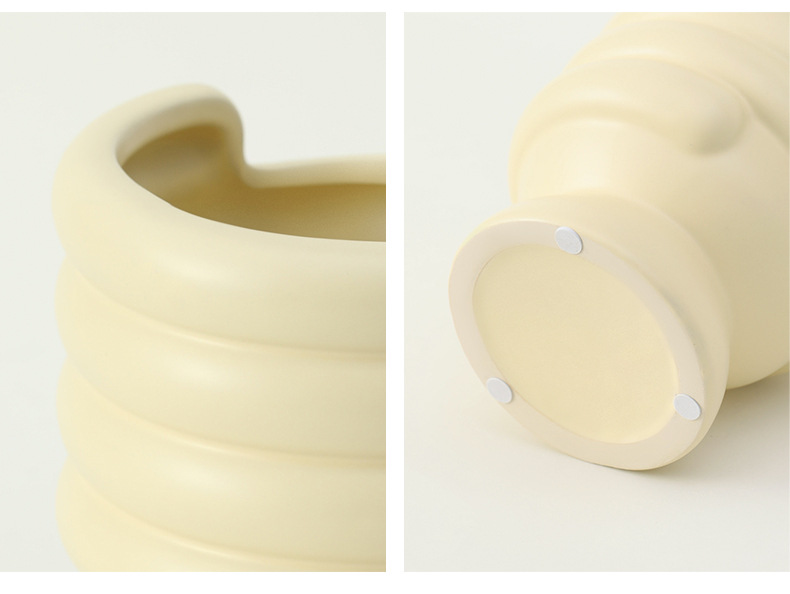 お部屋に癒しをプラス✨ モダン スパイラル 植木鉢 (陶器製/クリーム色) - 観葉植物をオシャレに飾ろう!