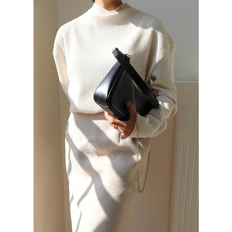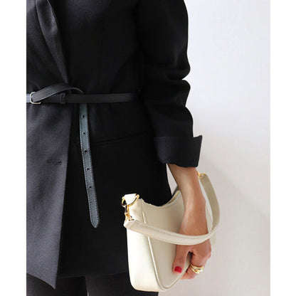 トレンディなレトロムードを現代的に再解釈したバゲットショルダーバッグ。