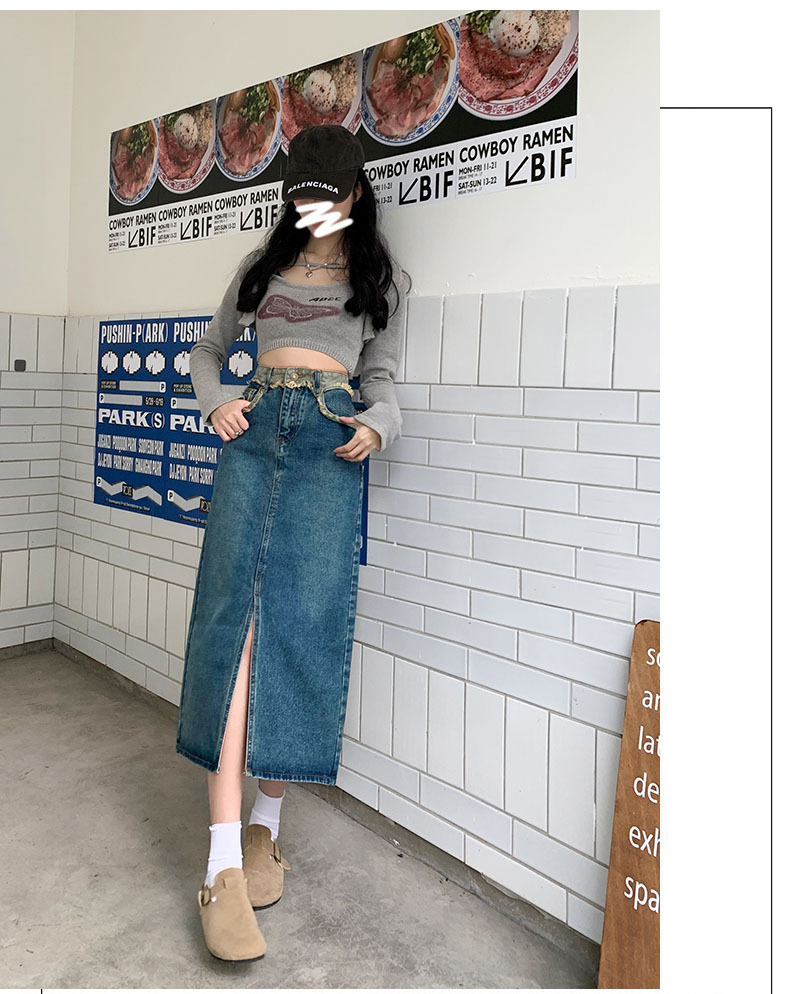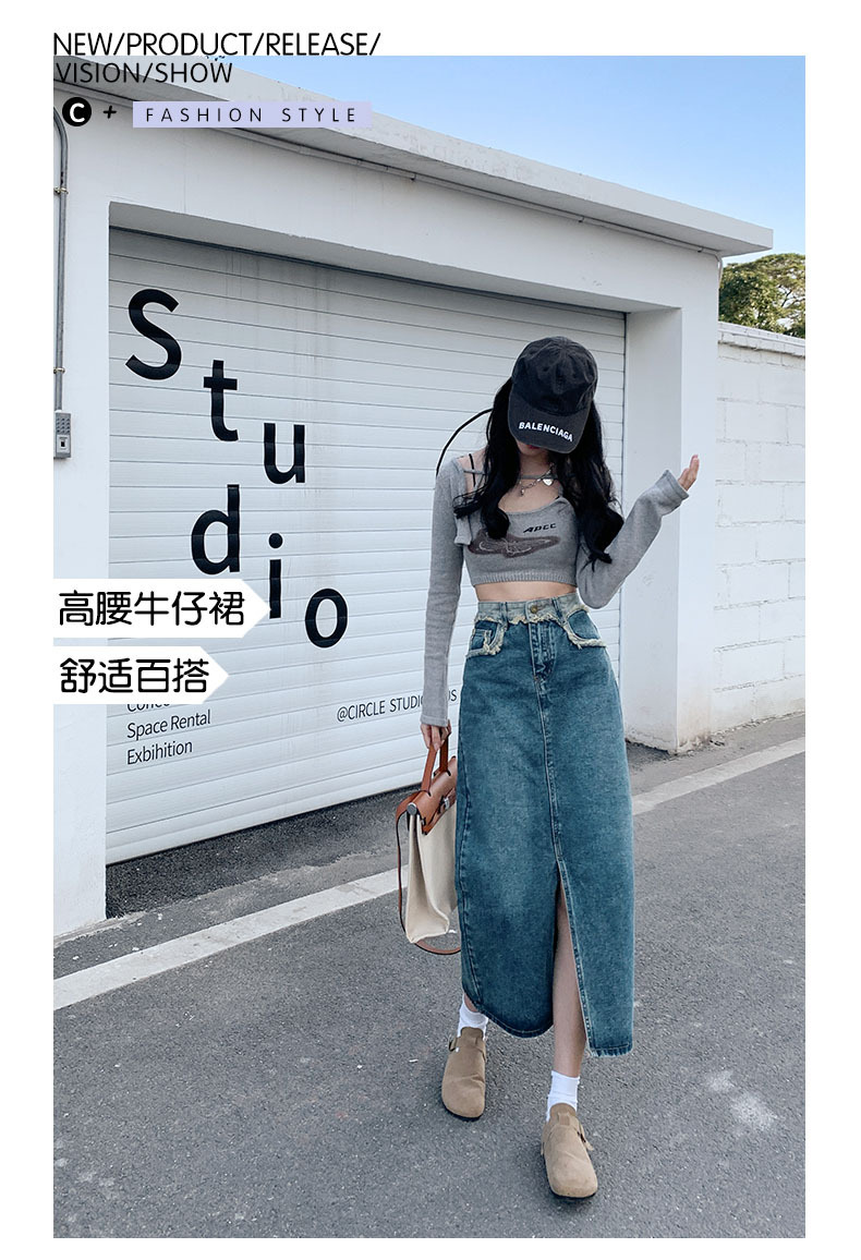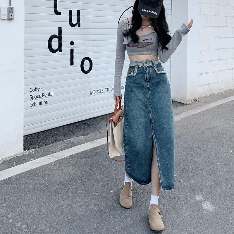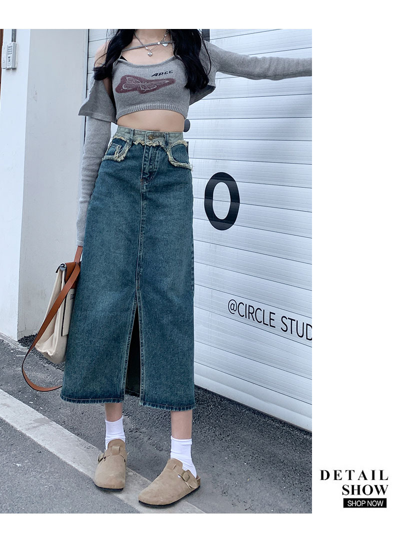 レトロな雰囲気を漂わせるハイウエストスリットデニムスカート。