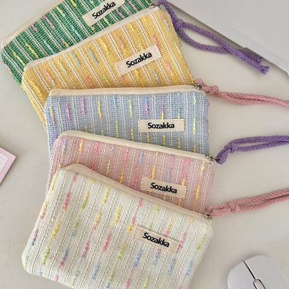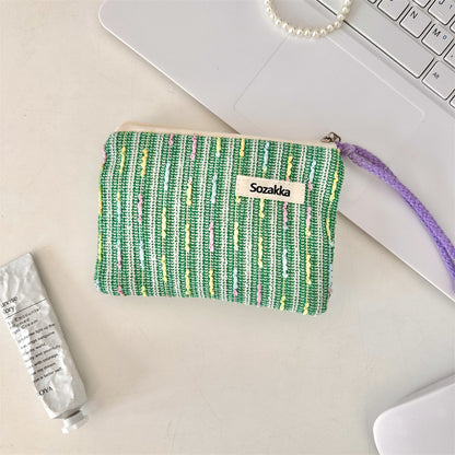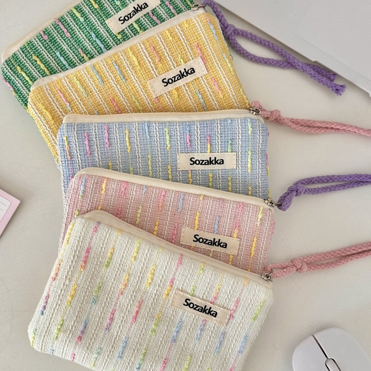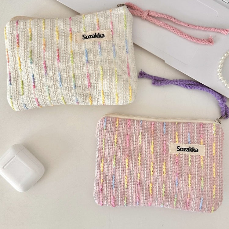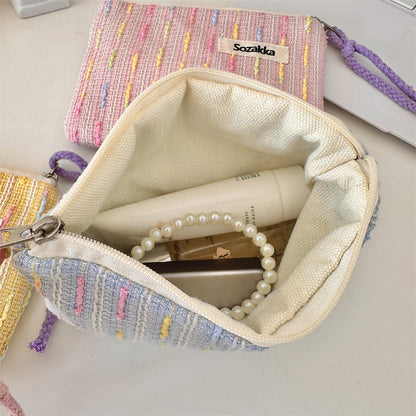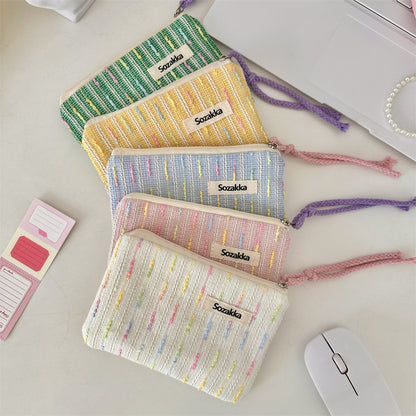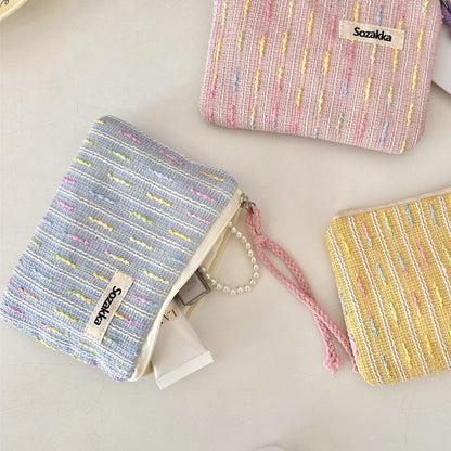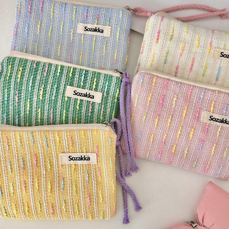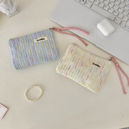パステルニットストライプ化粧ポーチ 女の子用タッチアップバッグ