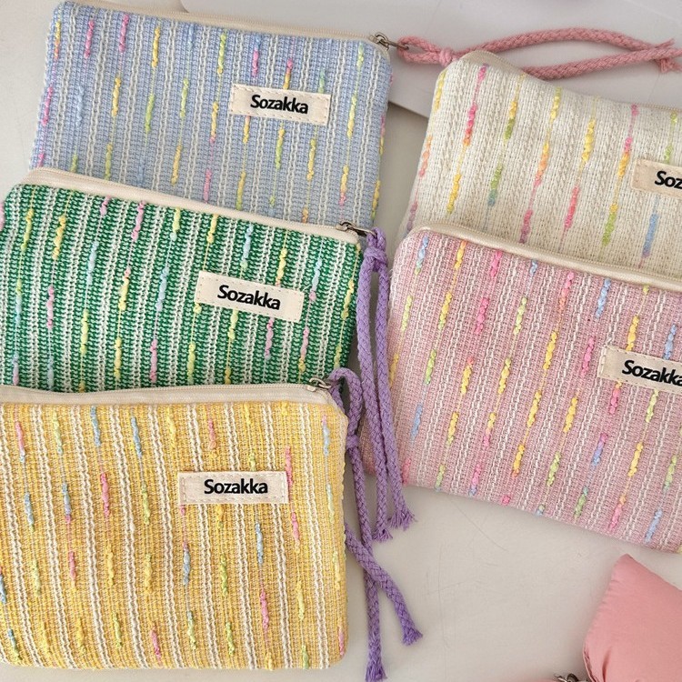 kawai-profileパステルニットストライプ化粧ポーチ 女の子用タッチアップバッグ