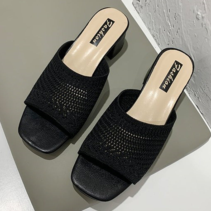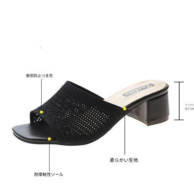 韓国風デザインのレディースフライングニットミッドヒールサンダル👡