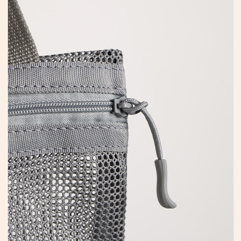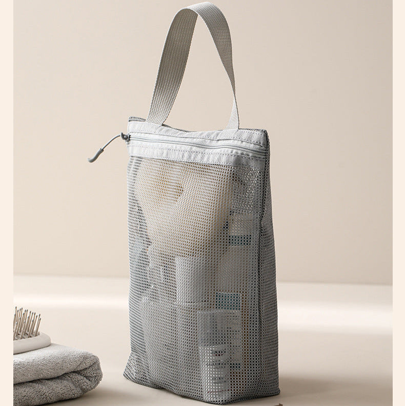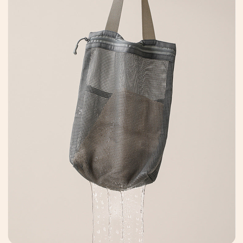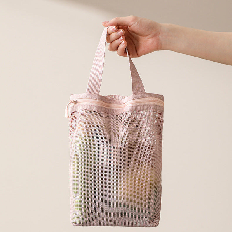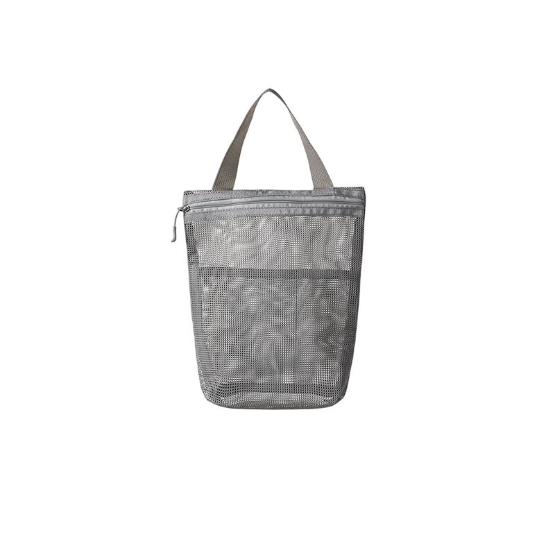 清潔感あるシンプルなデザインのメッシュトイレタリーバッグ。