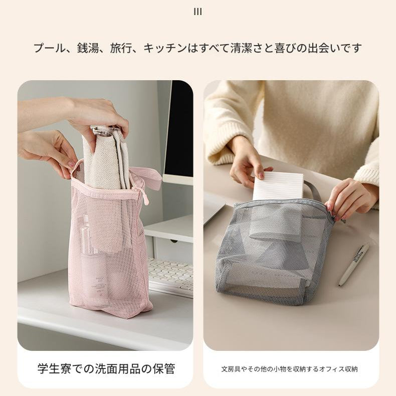メッシュトイレタリーバッグ 大容量&携帯便利な洗面収納