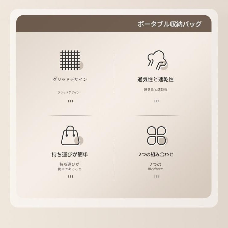 通気性が高く速乾性も抜群。中身も見やすく、整理しやすいのもポイント!