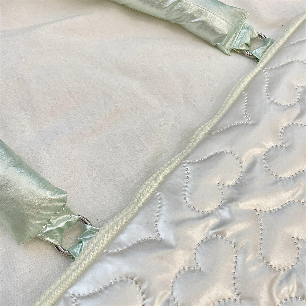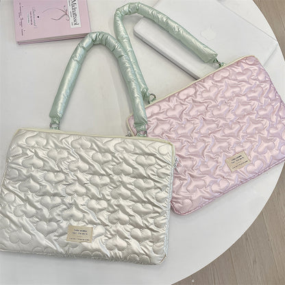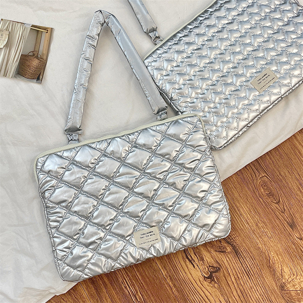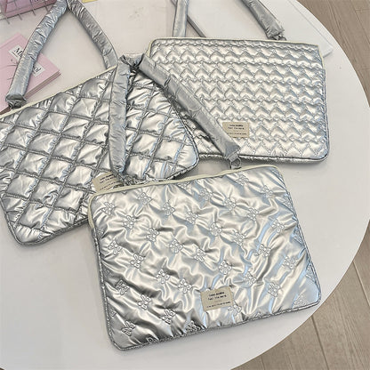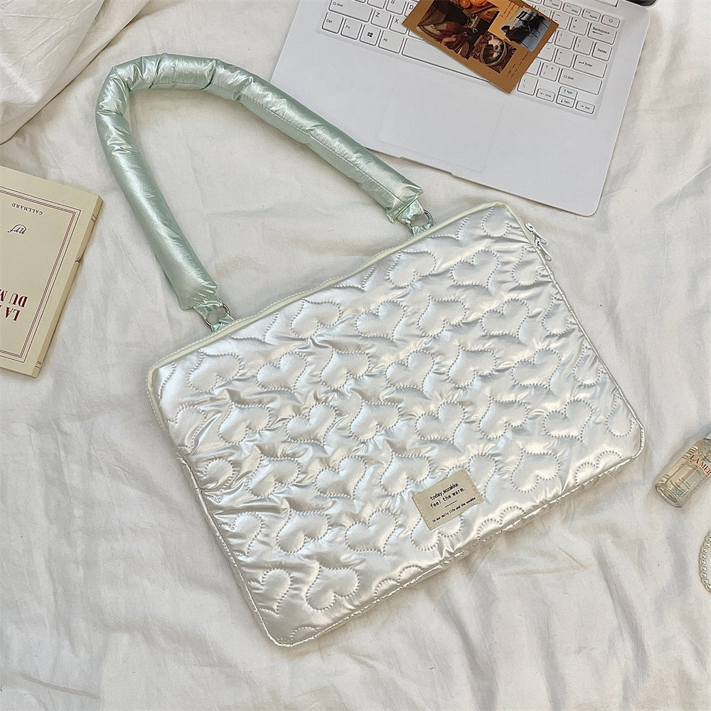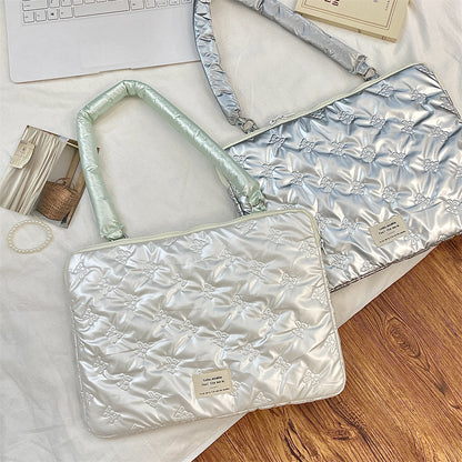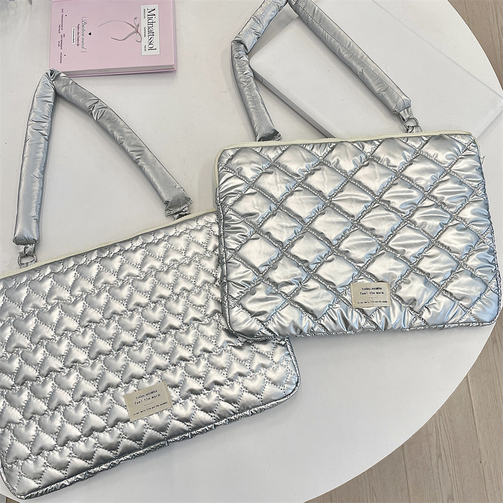 💼 可愛らしいリボン刺繍がちりばめられた、ふんわりキルティング加工のスリーブ&ショルダーバッグです。