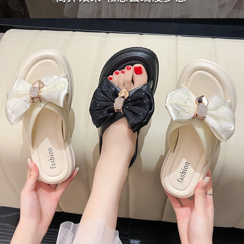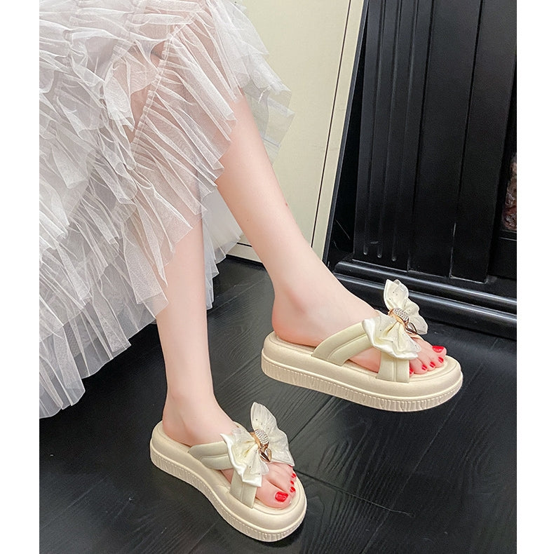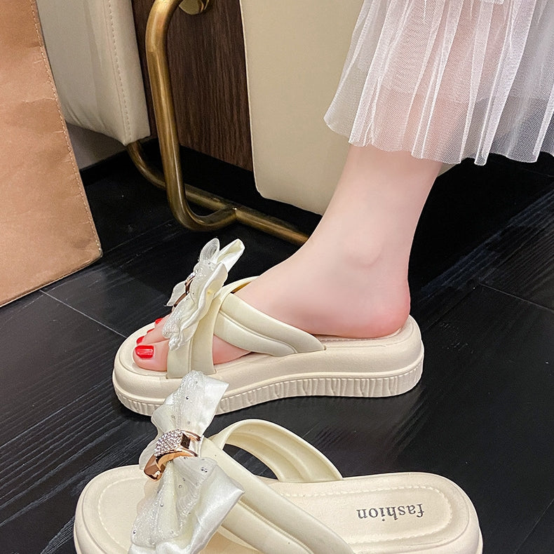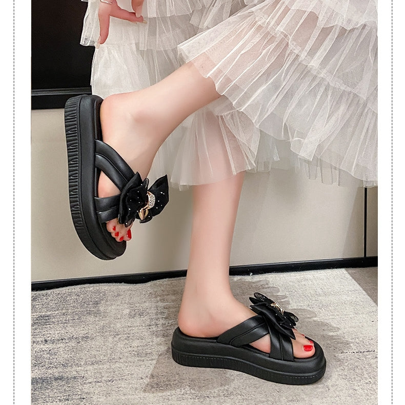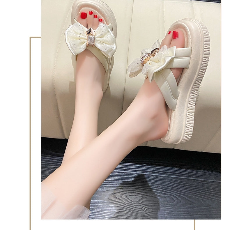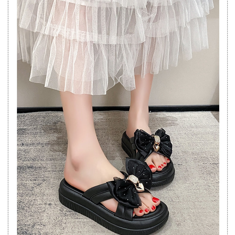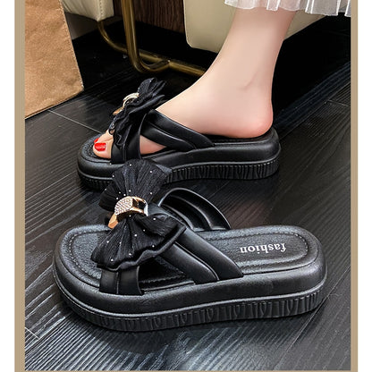 リボン付き厚底サンダル|レディースアウトドアスリッパ 2025年夏新作