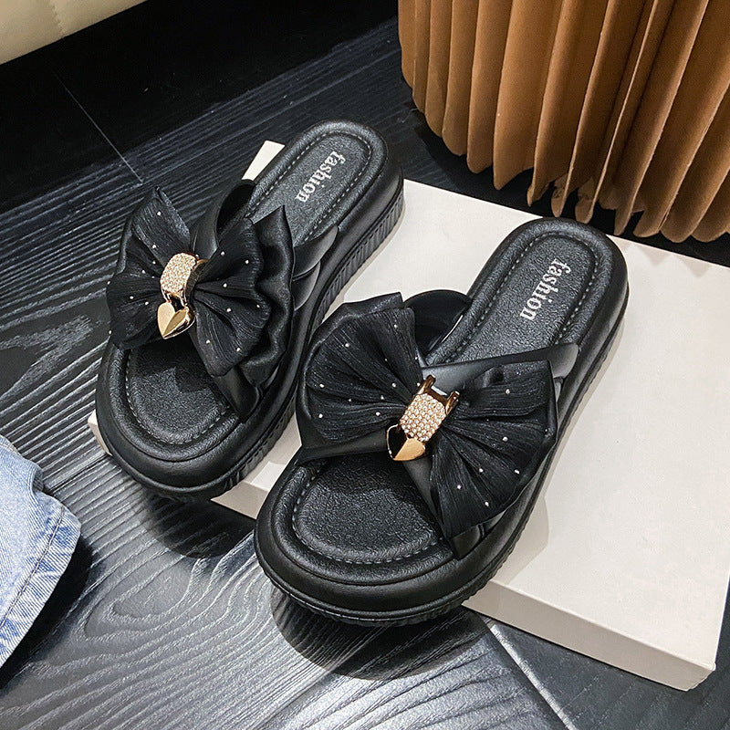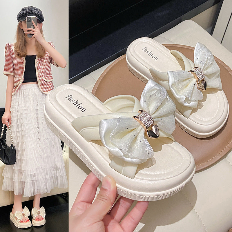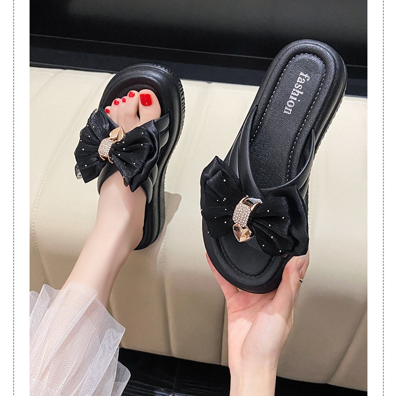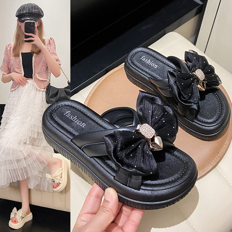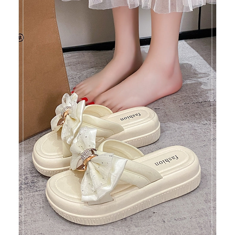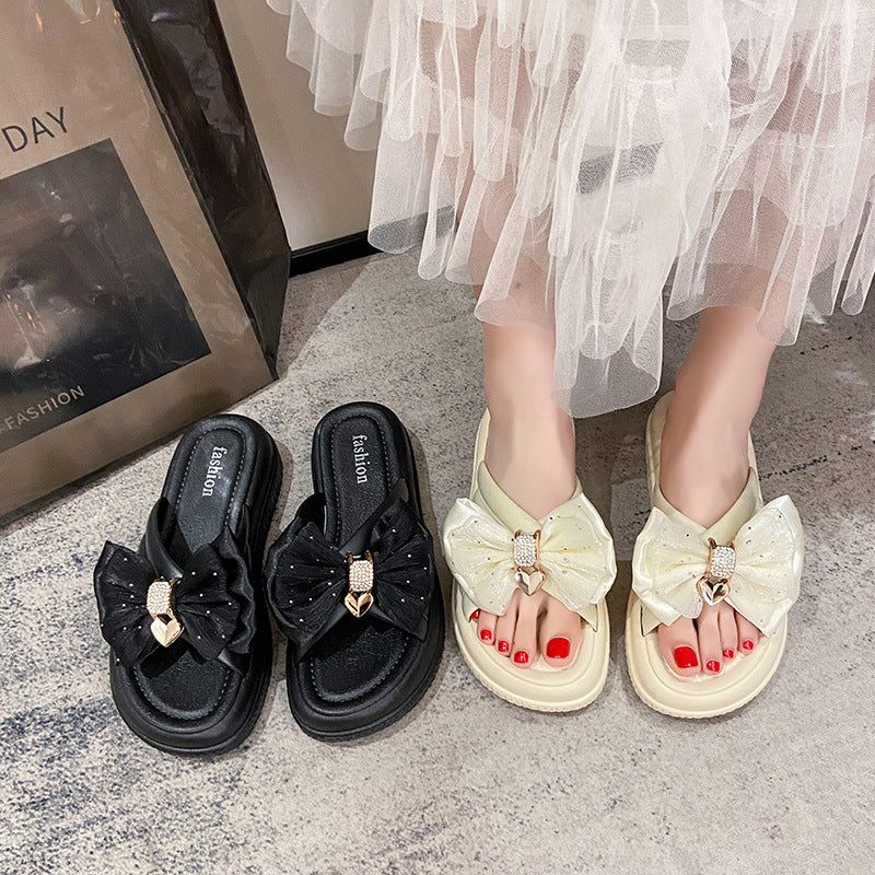 リボン付き厚底サンダル|レディースアウトドアスリッパ 2025年夏新作
