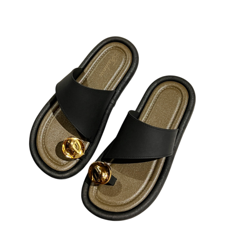 シンプルでモダンなデザインが特徴のスリップトゥサンダル。