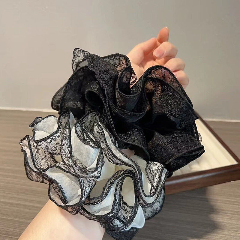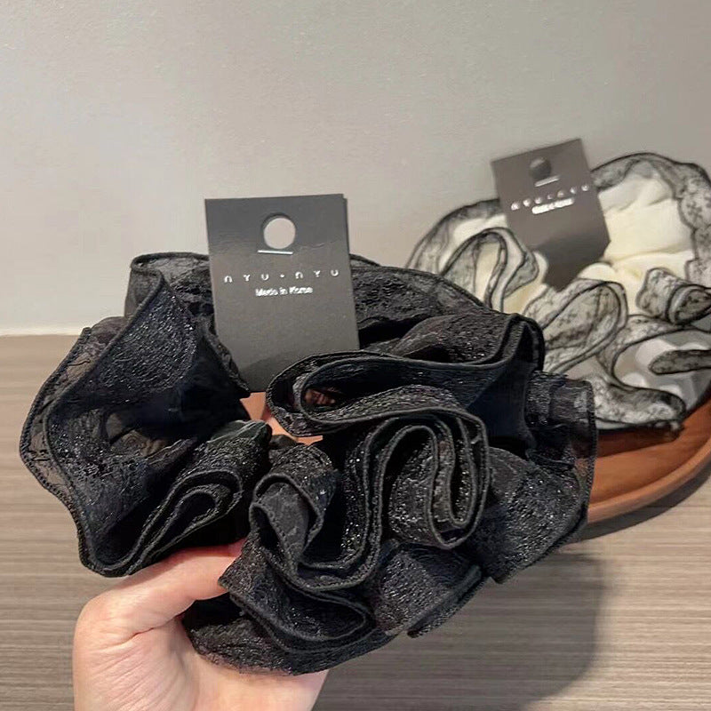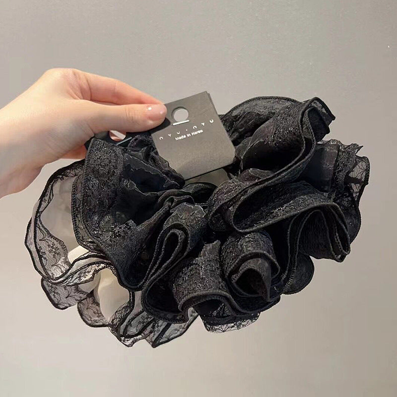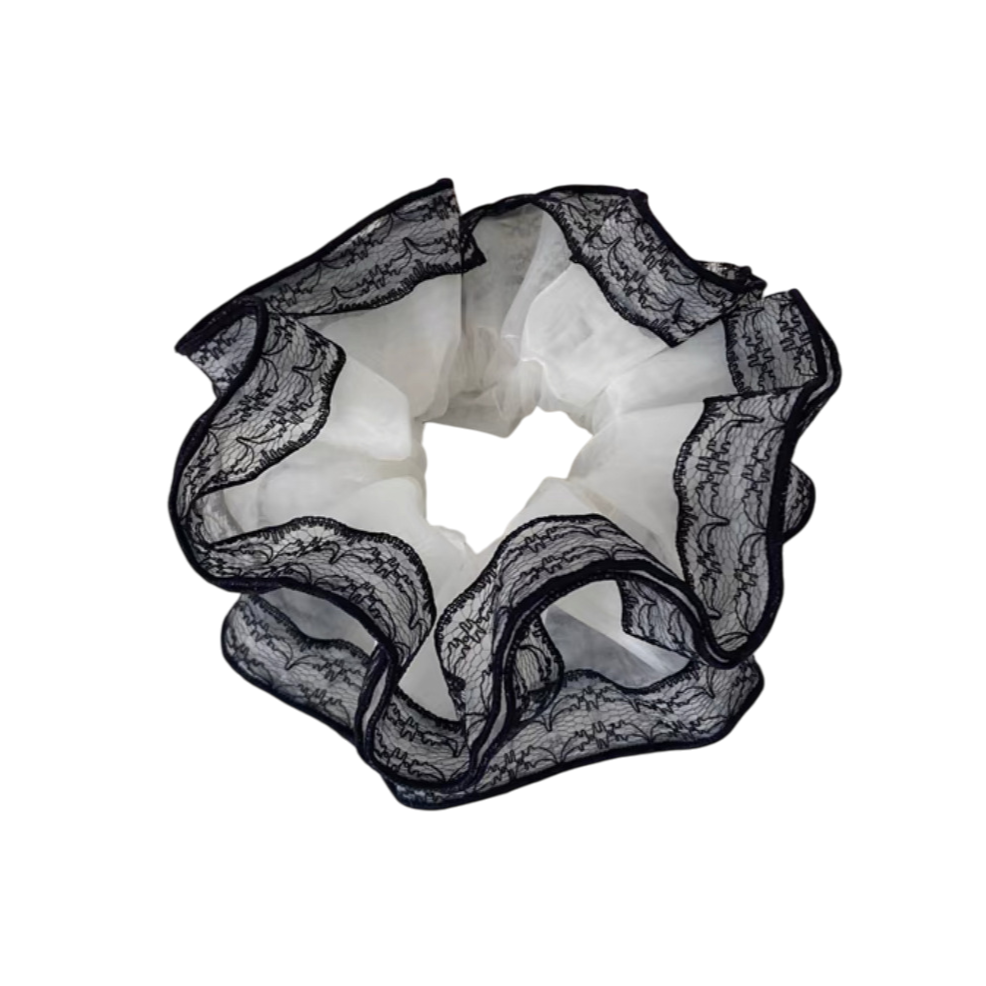 フェアリー感漂うレース縁デザインと大胆なフリル感が魅力のビッグシュシュ。