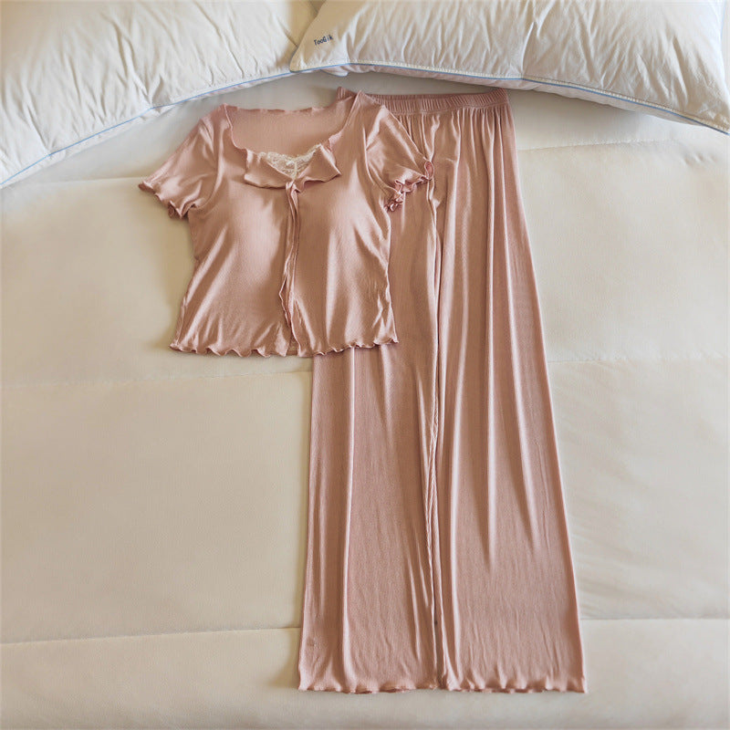 ナイトブラ付きで1枚で楽ちん。家の中でも、ちょっとした外出でもOKなラウンジウェアセット。夏にぴったりの薄手素材で涼しく快適!