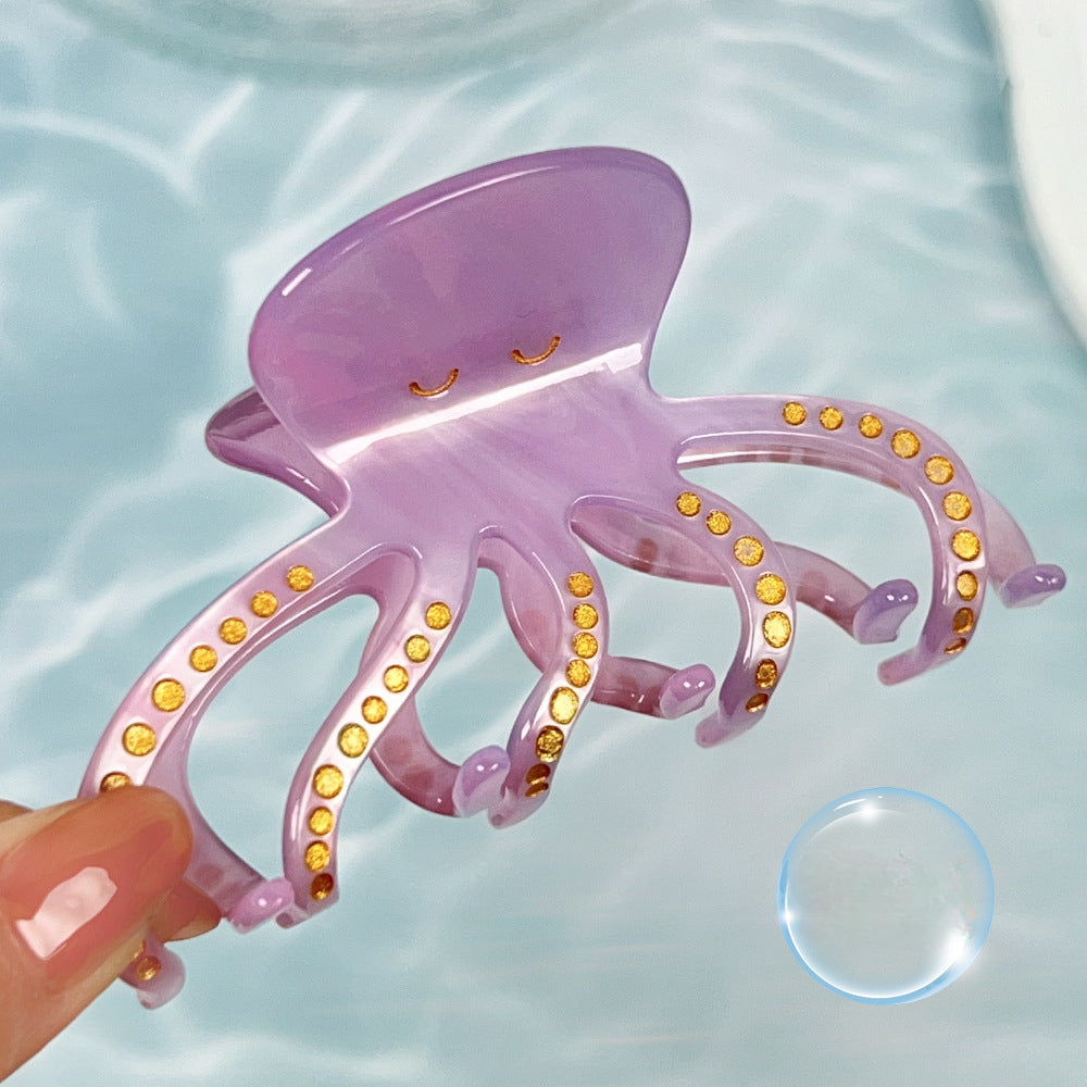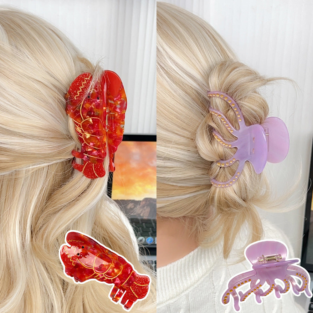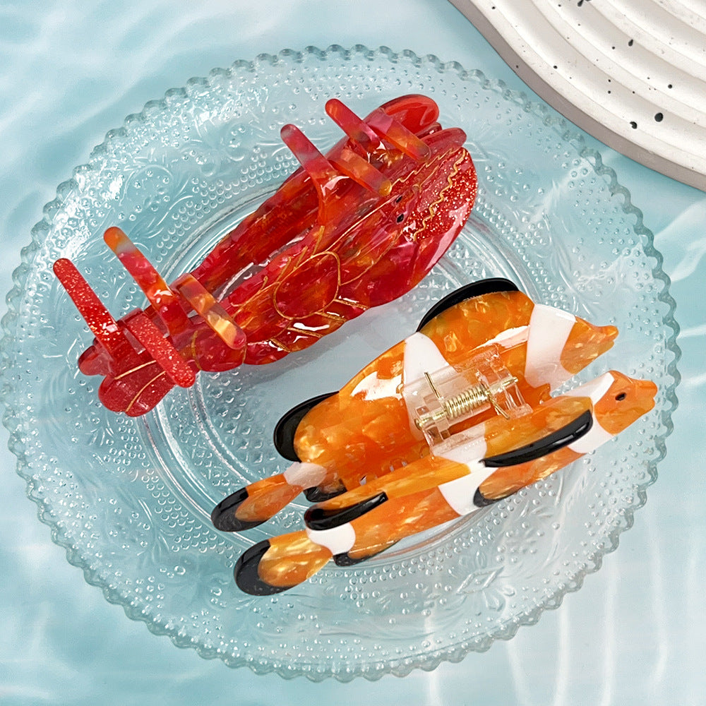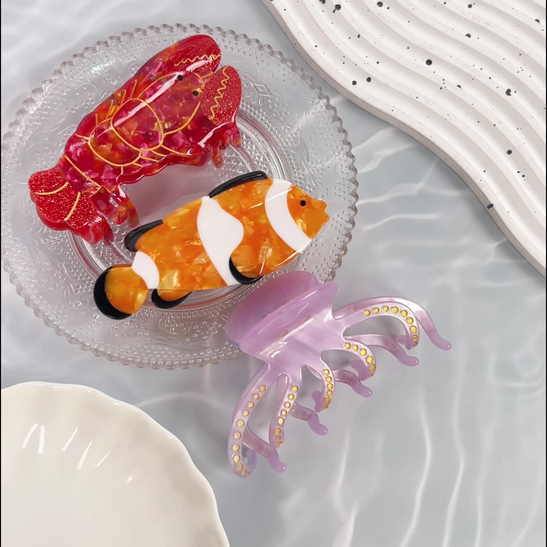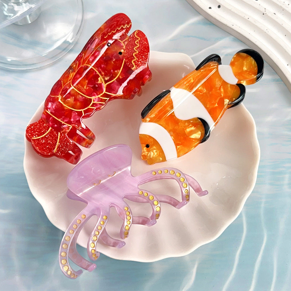 海の生き物モチーフアセテートヘアクリップ|タコ・ロブスター・熱帯魚デザイン