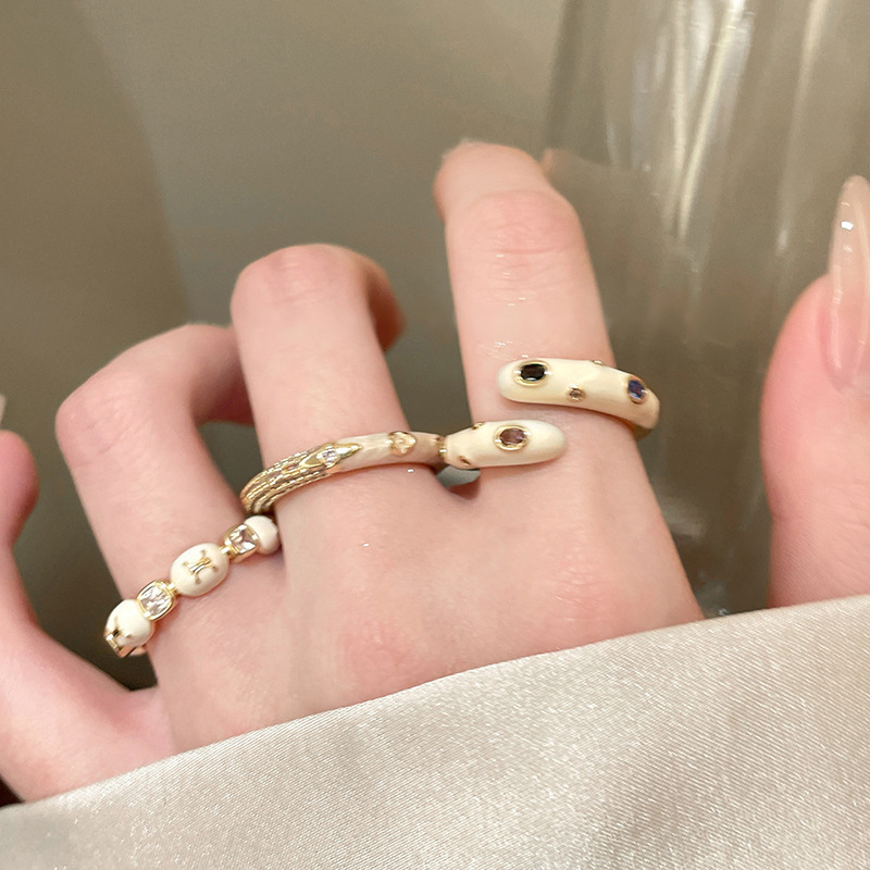 - シンプルなニットやワンピースに合わせて、リングを主役に。