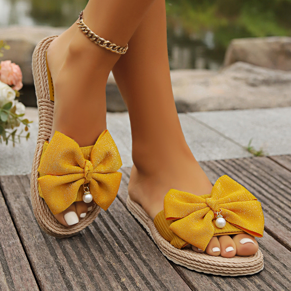 kawai-profile黄麻布リボン フリップフロップ|夏用フラットスリッパ レディース